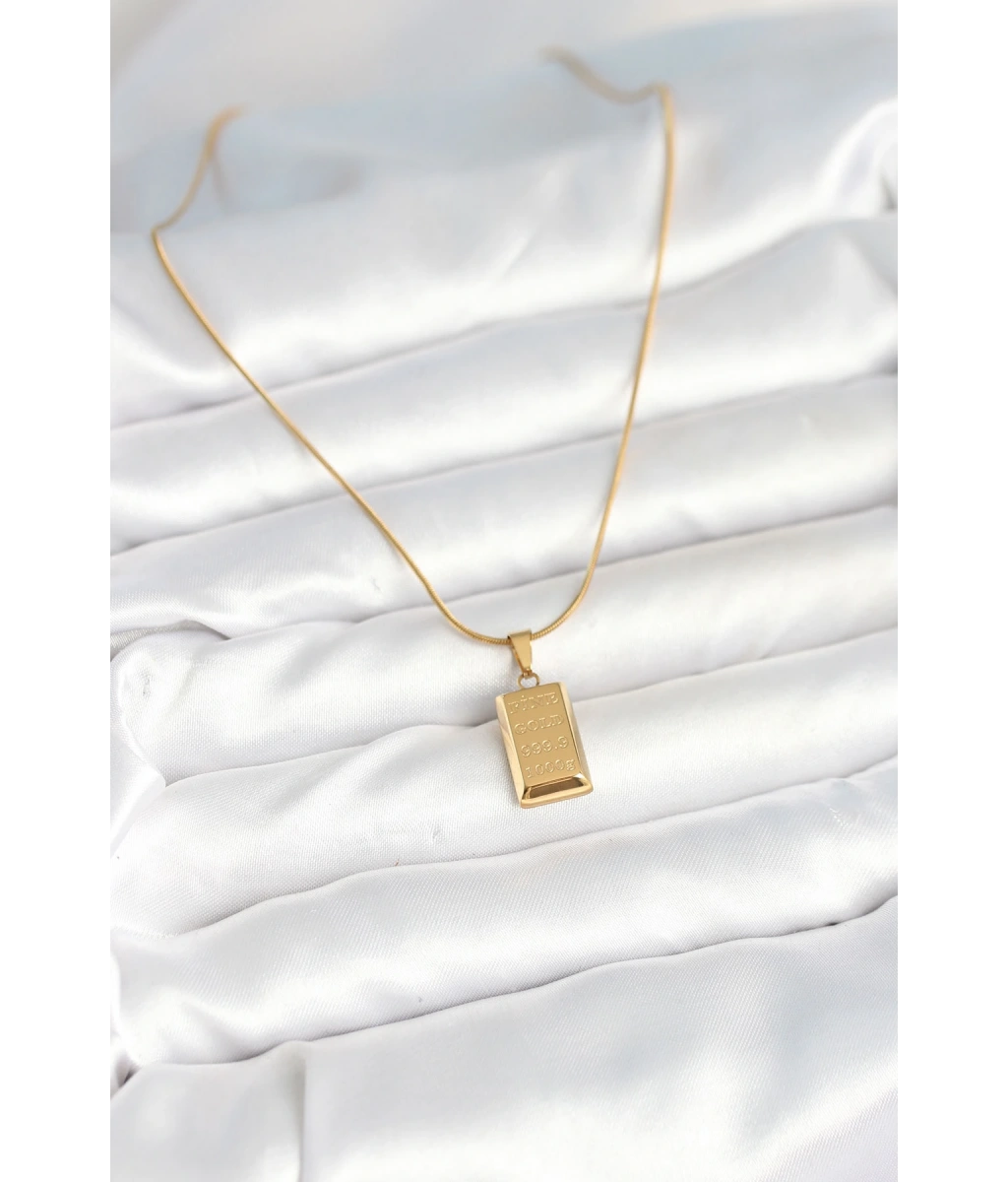 Shoecide 316l Çelik Gold Renk Mini Külçe Altın Model Kolye