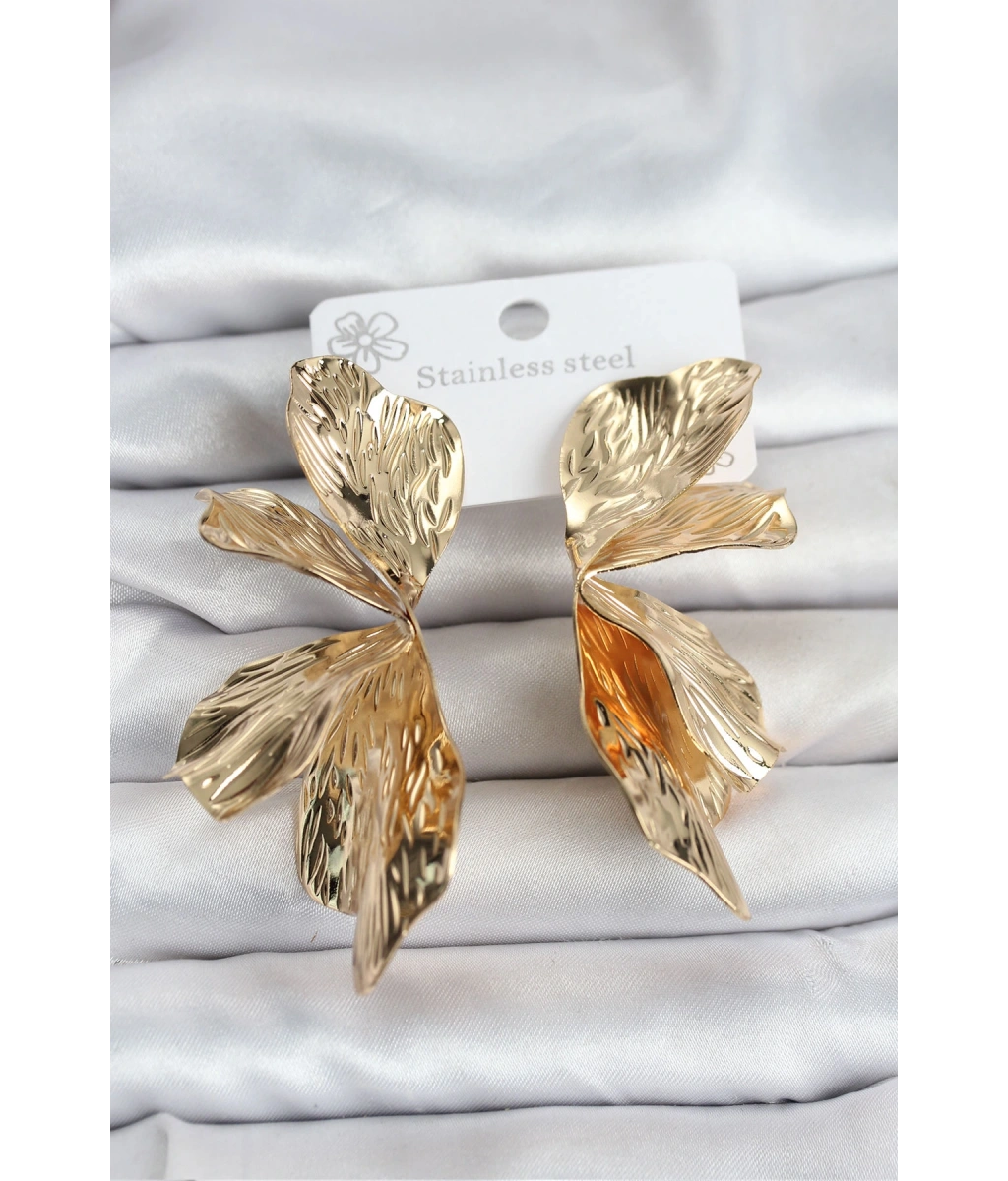 Shoecide 316l Çelik Gold Renk Lotus Yaprak Kadın Küpe