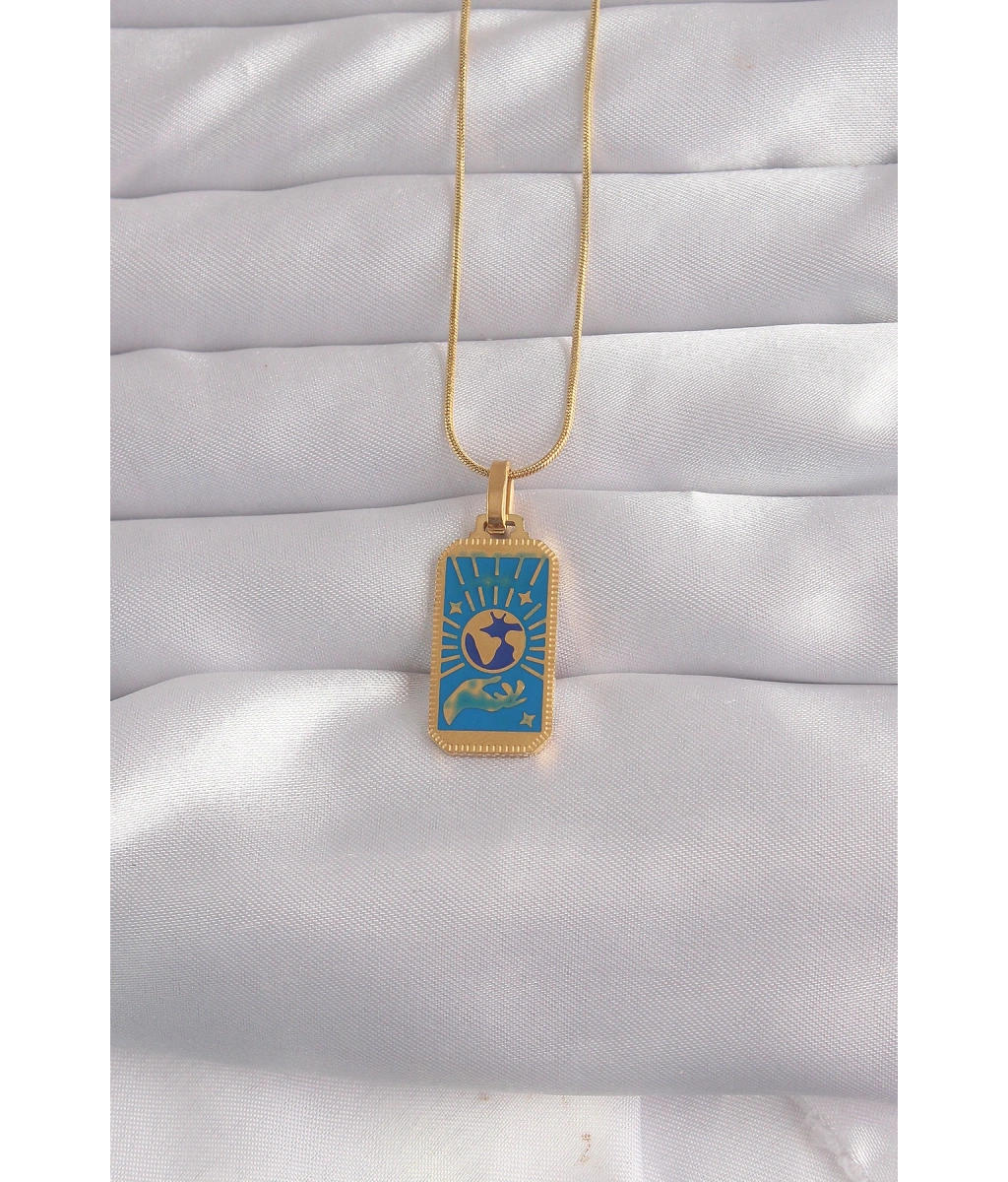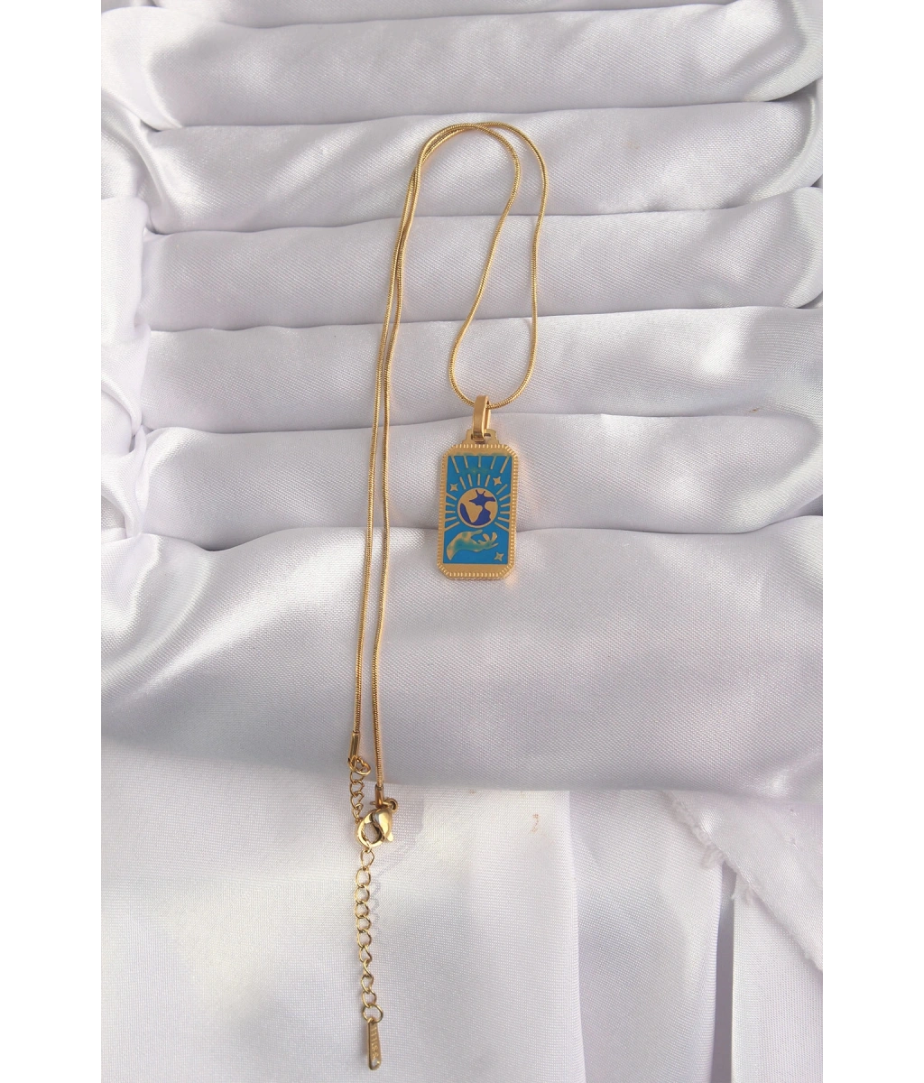 Shoecide 316l Çelik Gold Renk Mavi Mineli El Figür Tarot Kolye