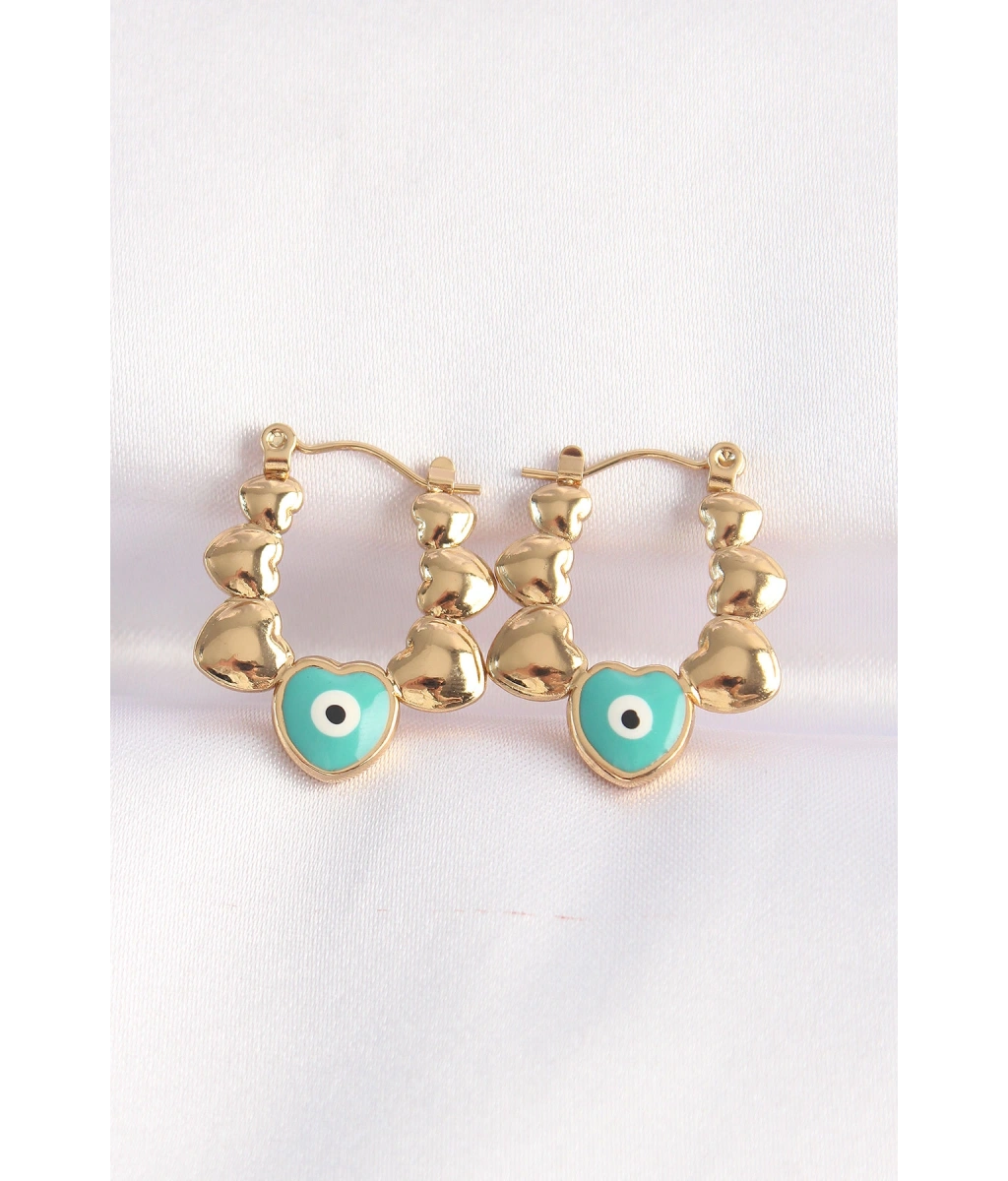 Shoecide 316l Çelik Gold Renk Mavi Nazarlı Kalpli Model Küpe