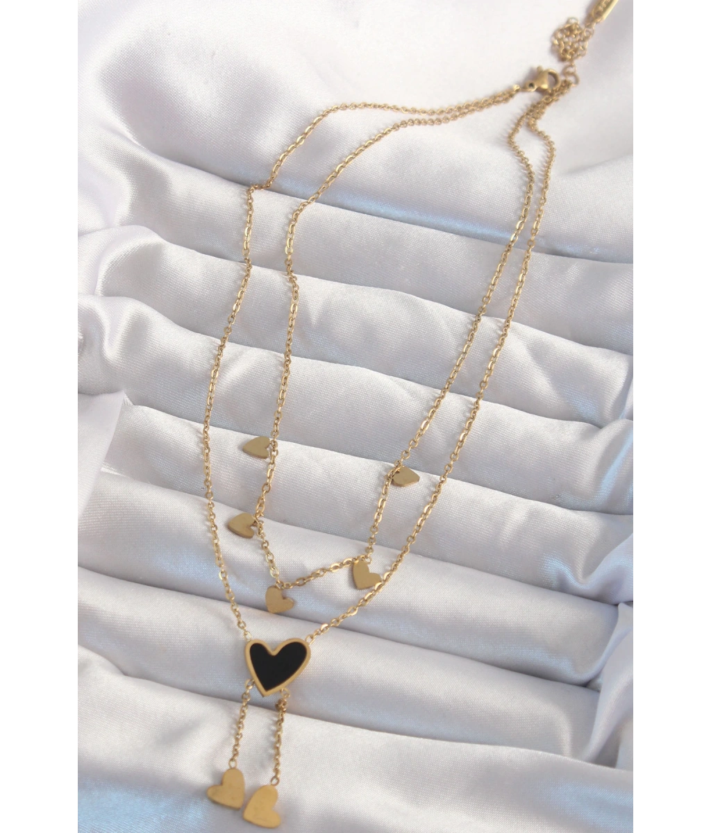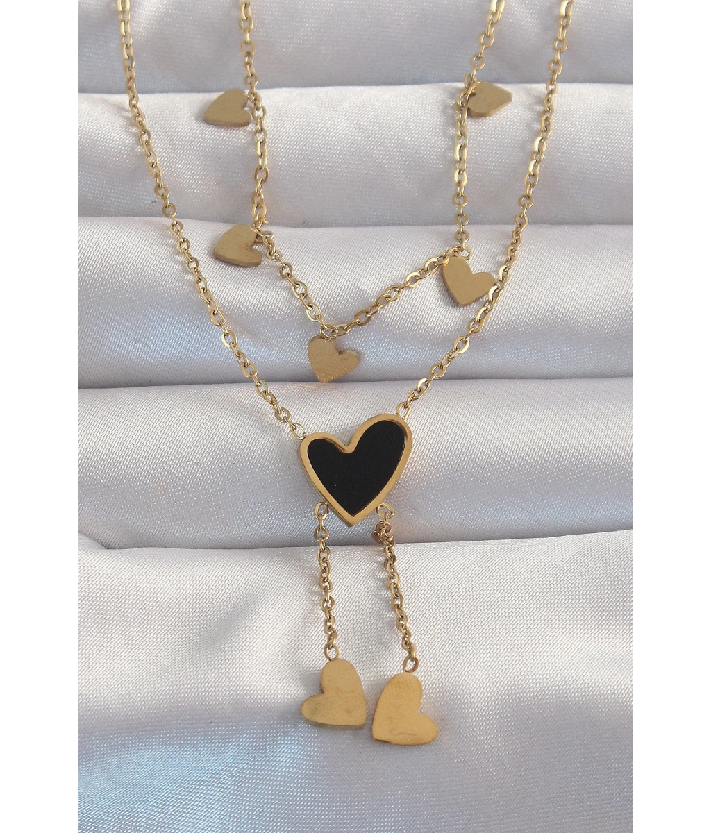 Shoecide 316l Çelik Gold Renk Mineli Çoklu Kalp Kolye