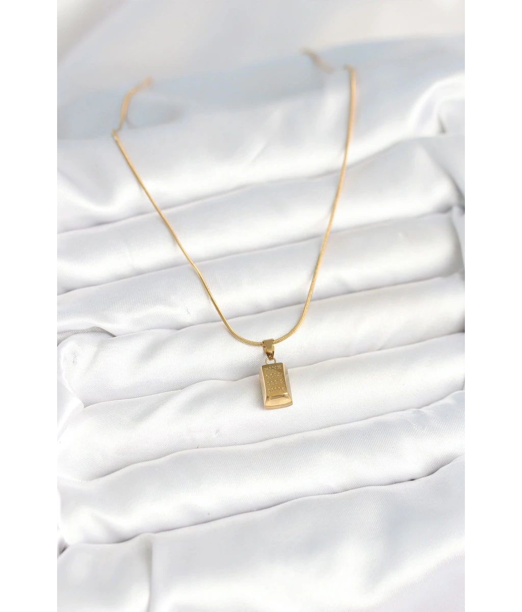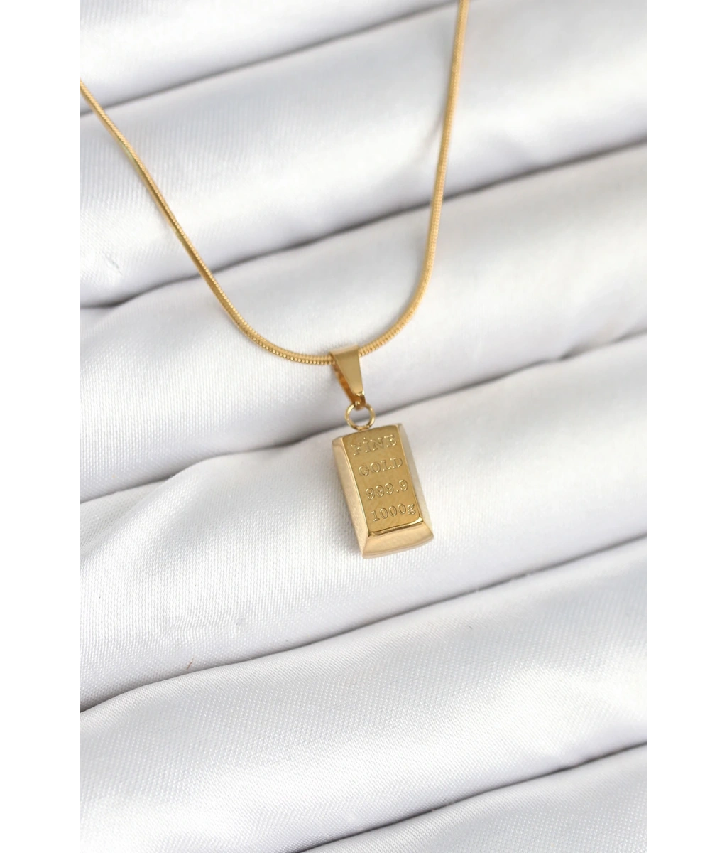 Shoecide 316l Çelik Gold Renk Külçe Altın Model Kolye