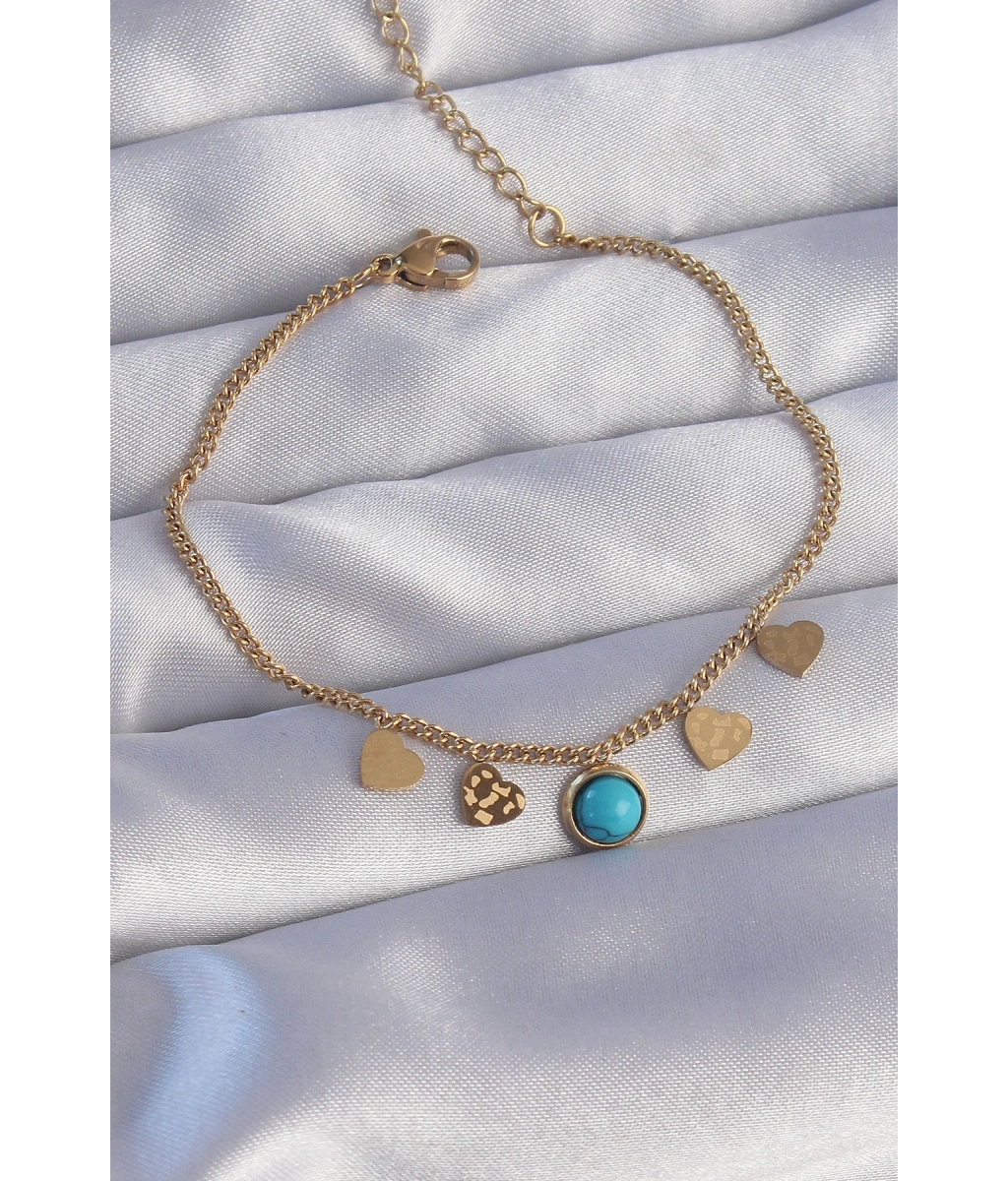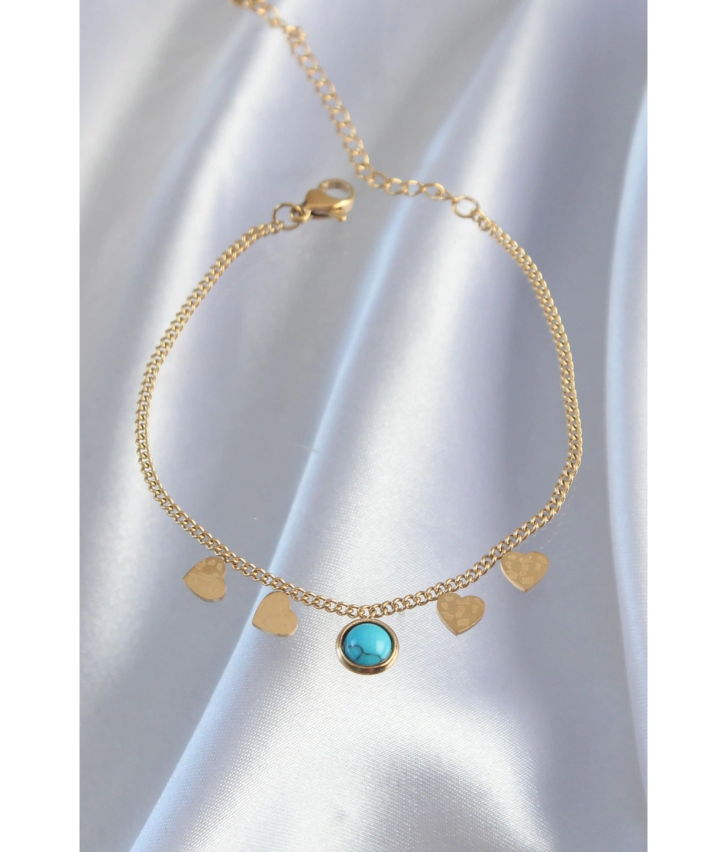 Shoecide 316l Çelik Gold Renk Minimal Kalpli Mavi Taş Detaylı Bileklik