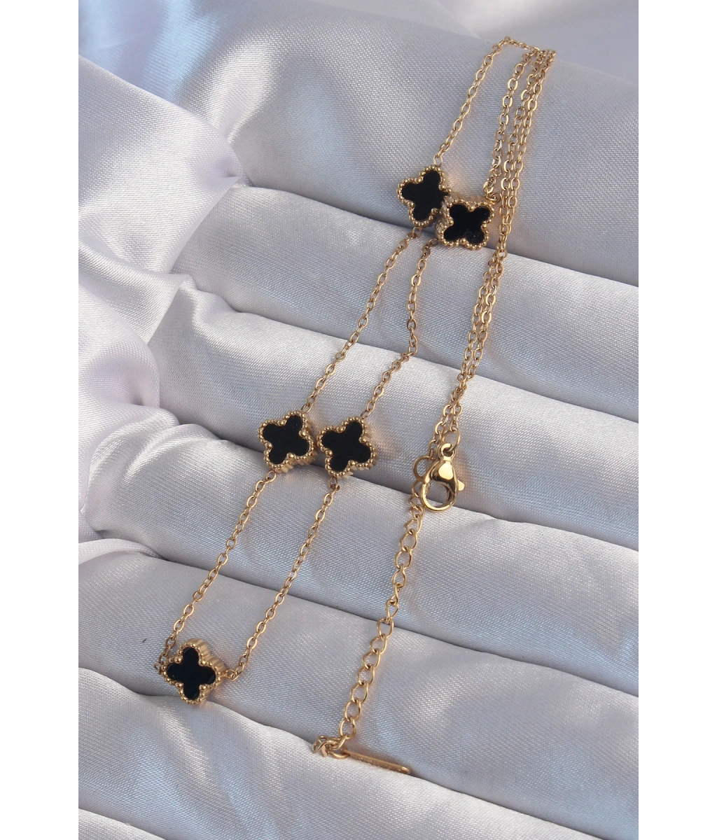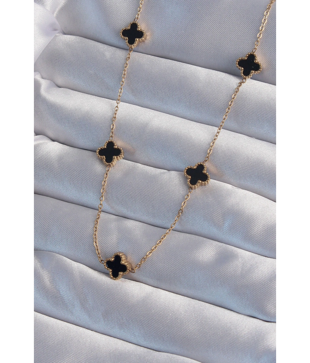 Shoecide 316l Çelik Zincir Gold Renk Siyah Ve Zirkon Taşlı Baby Boy Yonca Kadın Kolye