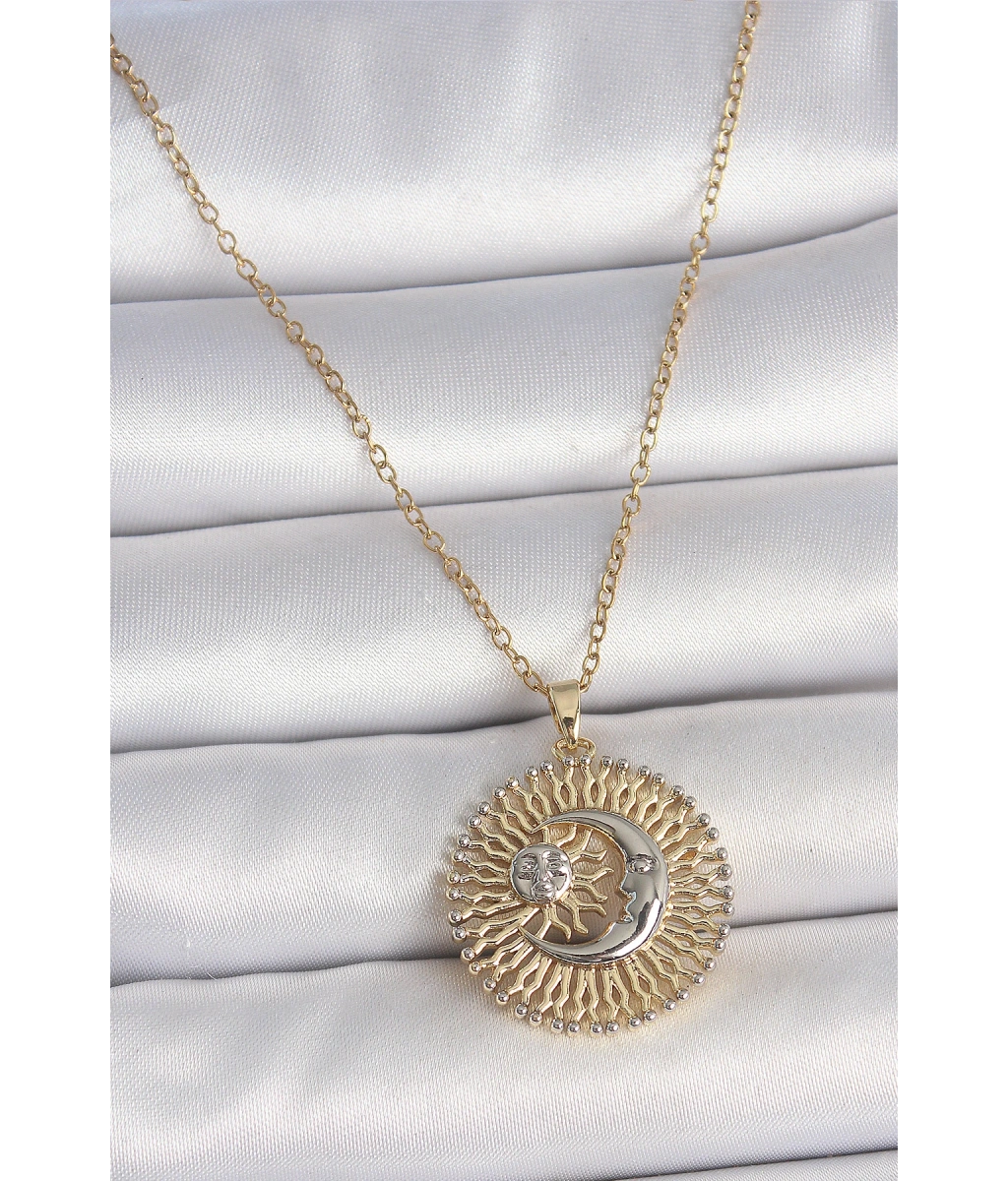 Shoecide 316l Çelik Gold Renk Mix Renk Ay Güneş Model Kadın Kolye