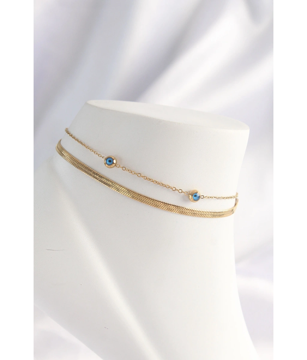 Shoecide 316l Çelik Gold Renk Nazar Boncuk Tasarımlı 2li Halhal