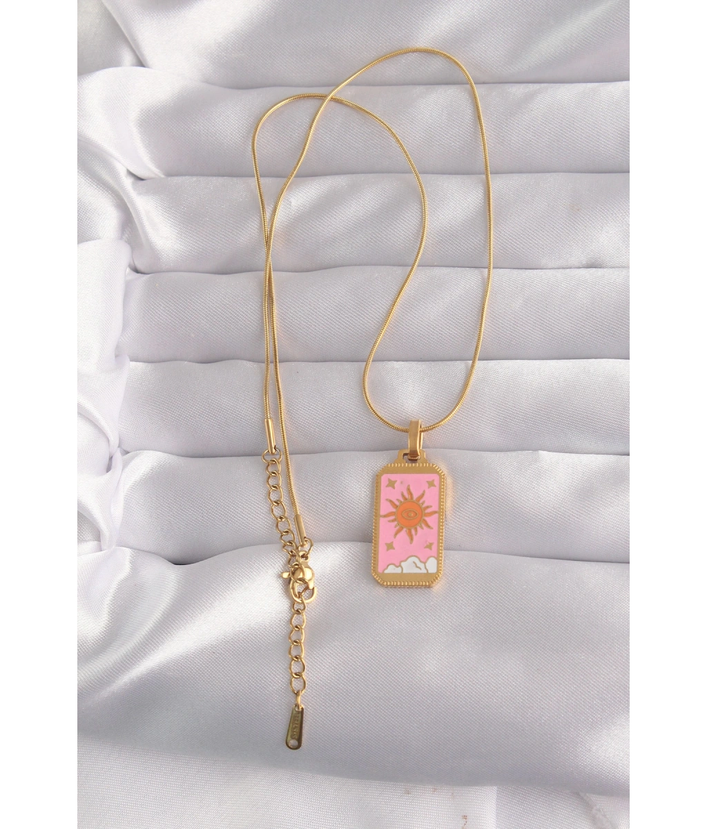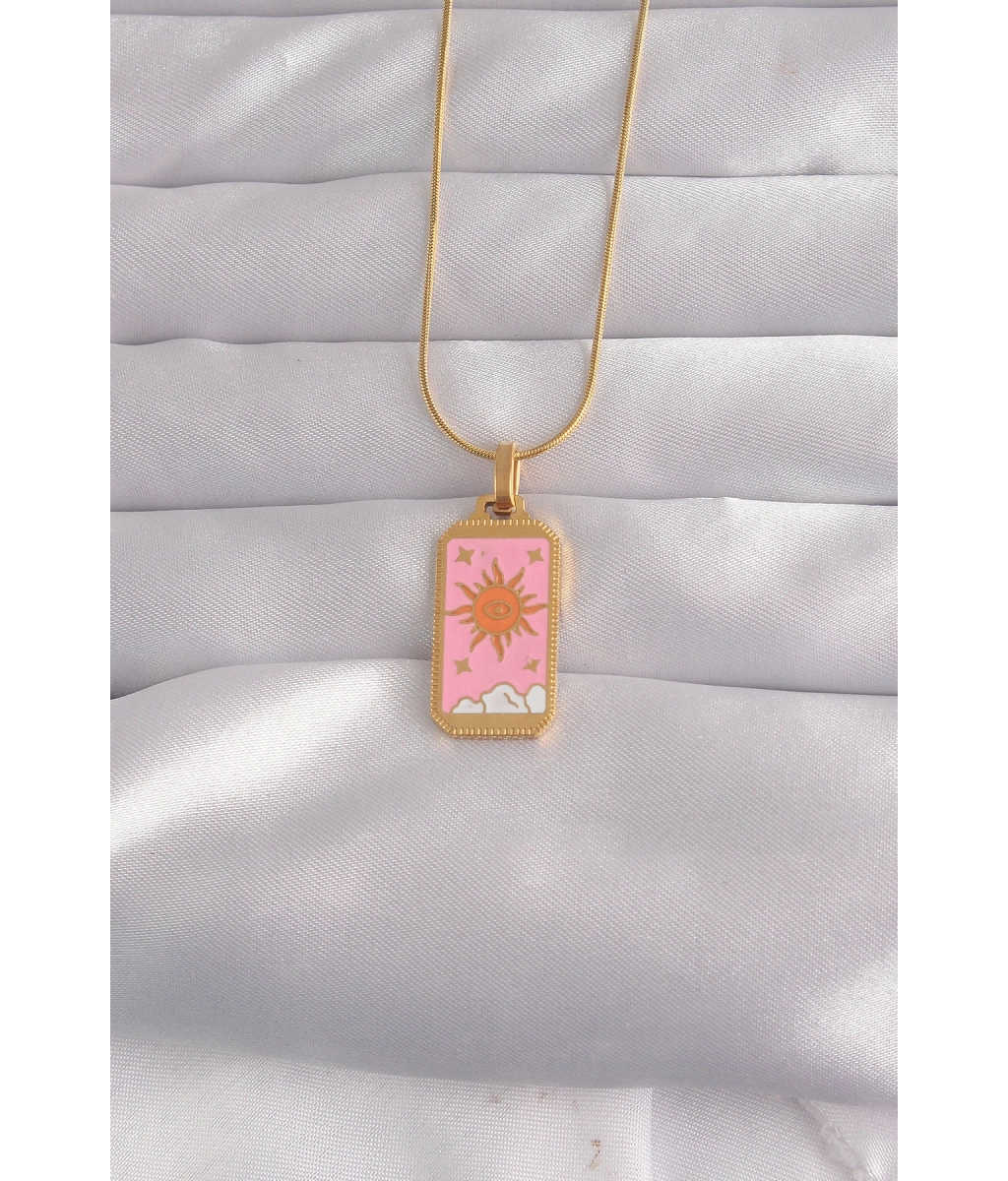 Shoecide 316l Çelik Gold Renk Pembe Mineli Güneş Model Tarot Kolye
