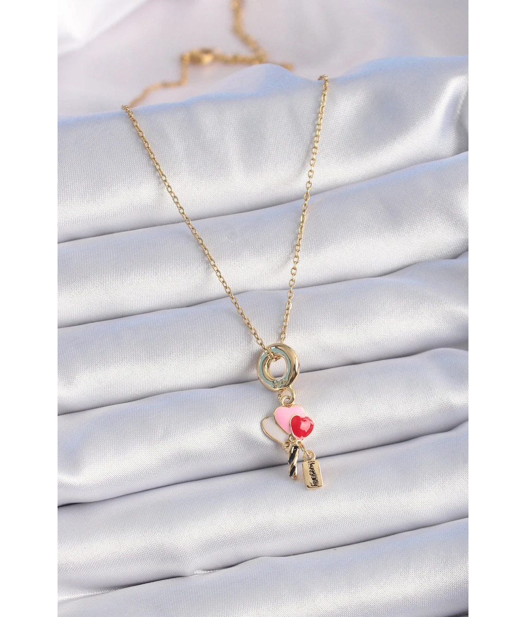 Shoecide 316l Çelik Gold Renk Renkli Kalp Figür Charm Model Kadın Kolye