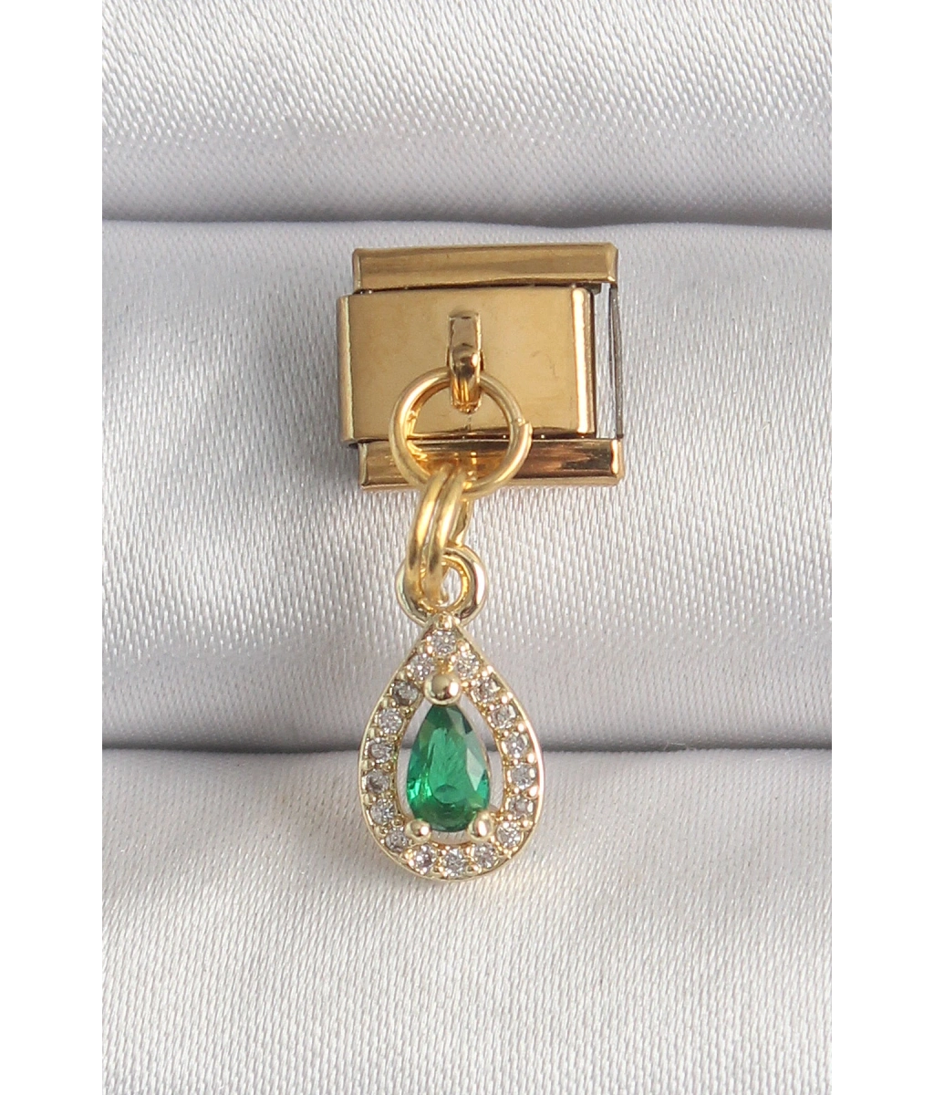 Shoecide 316l Çelik Gold Renk Sallantı Damla Yeşil Zirkon Taşlı Nomination Charm