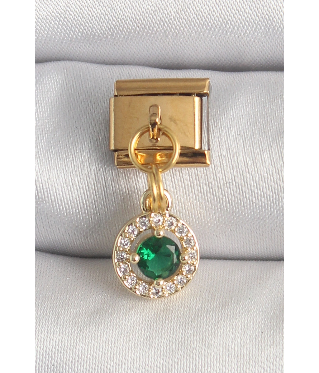 Shoecide 316l Çelik Gold Renk Sallantı Yeşil Zirkon Taşlı Nomination Charm