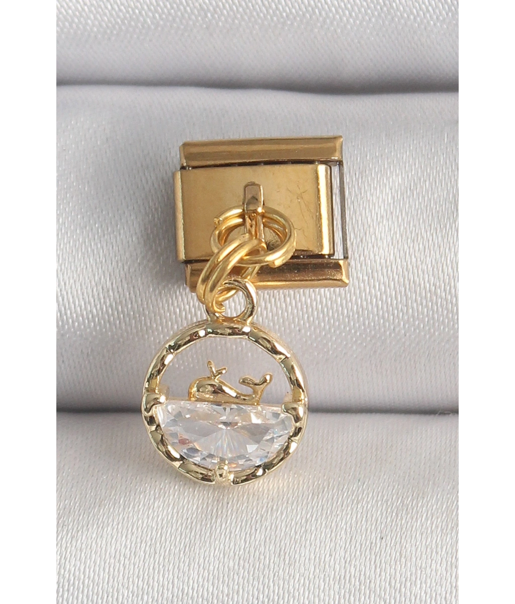 Shoecide 316l Çelik Gold Renk Sallantı Zirkon Taşlı Balina Model Nomination Charm