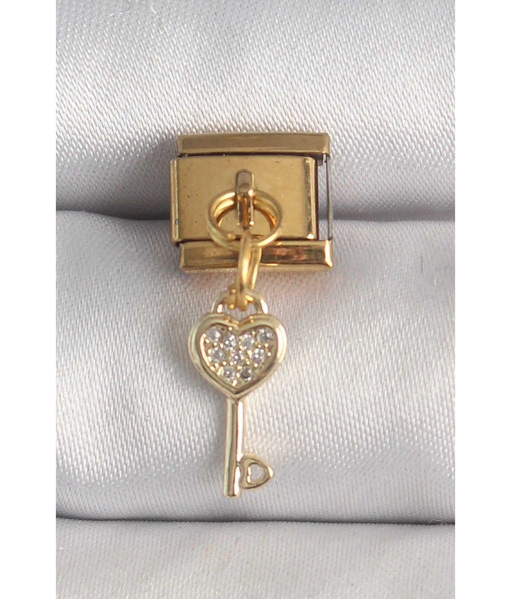 Shoecide 316l Çelik Gold Renk Sallantı Zirkon Taşlı Kalpli Anahtar Model Nomination Charm