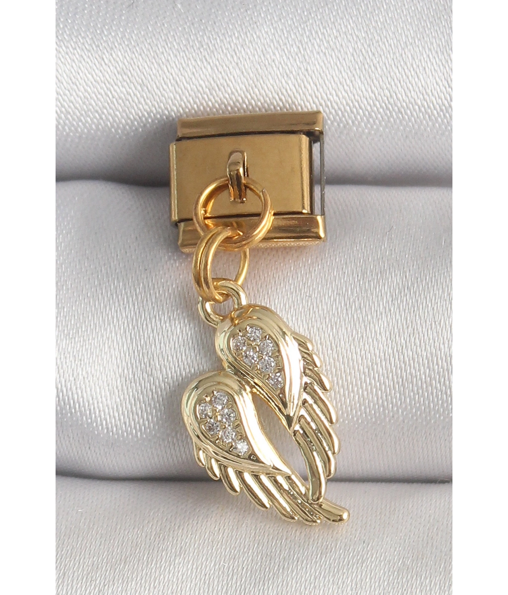 Shoecide 316l Çelik Gold Renk Sallantı Zirkon Taşlı Kanat Model Nomination Charm