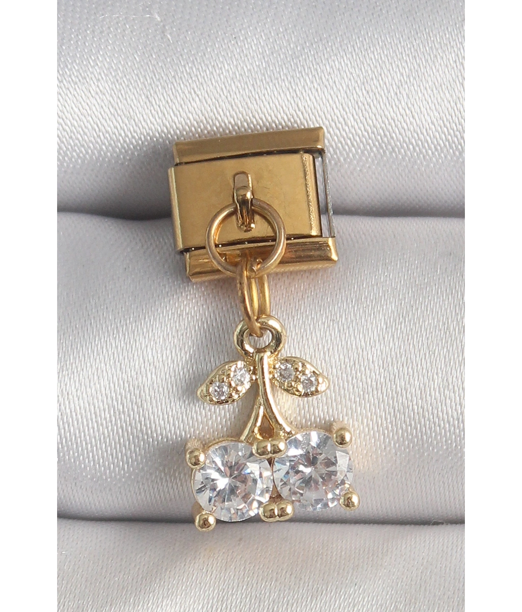 Shoecide 316l Çelik Gold Renk Sallantı Zirkon Taşlı Kiraz Model Nomination Charm