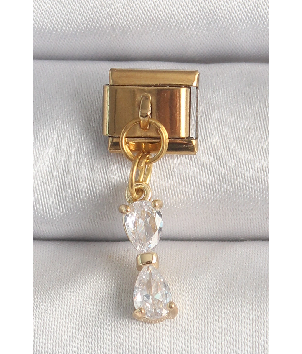 Shoecide 316l Çelik Gold Renk Sallantı Zirkon Taşlı Kurdele Model Nomination Charm