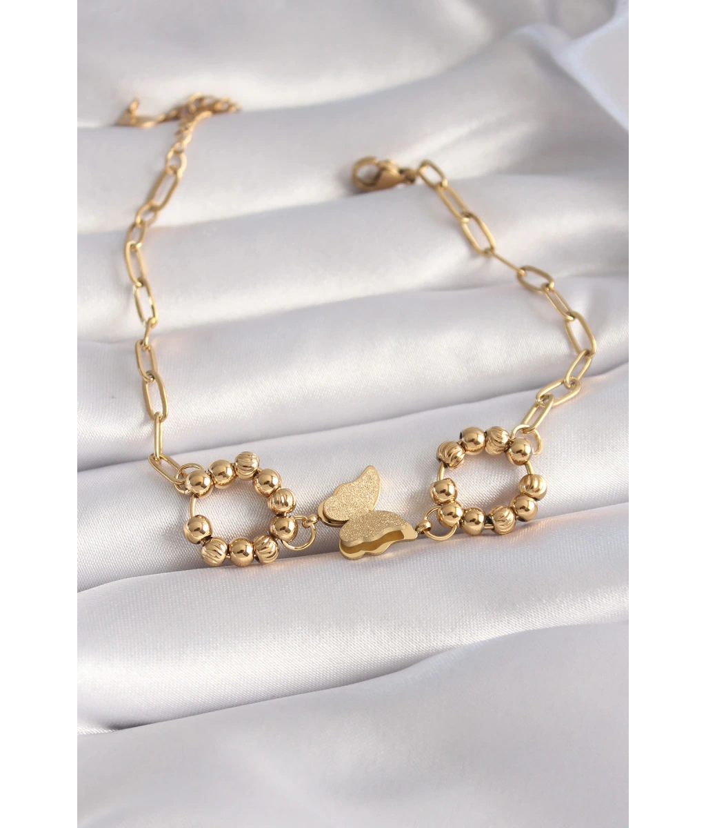 Shoecide 316l Çelik Gold Renk Simli Kelebek Figür Kadın Bileklik