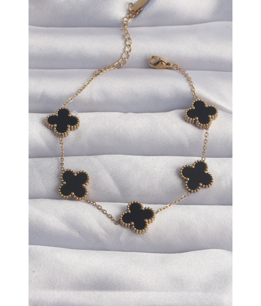 Shoecide 316l Çelik Gold Renk Siyah Mineli Yonca Bileklik