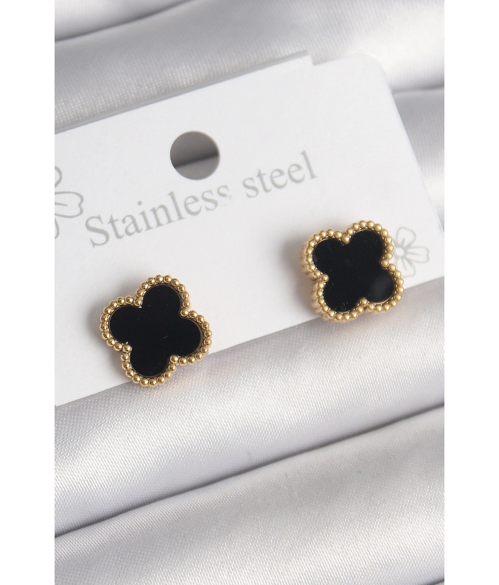 Shoecide 316l Çelik Gold Renk Siyah Yonca Model Kadın Küpe