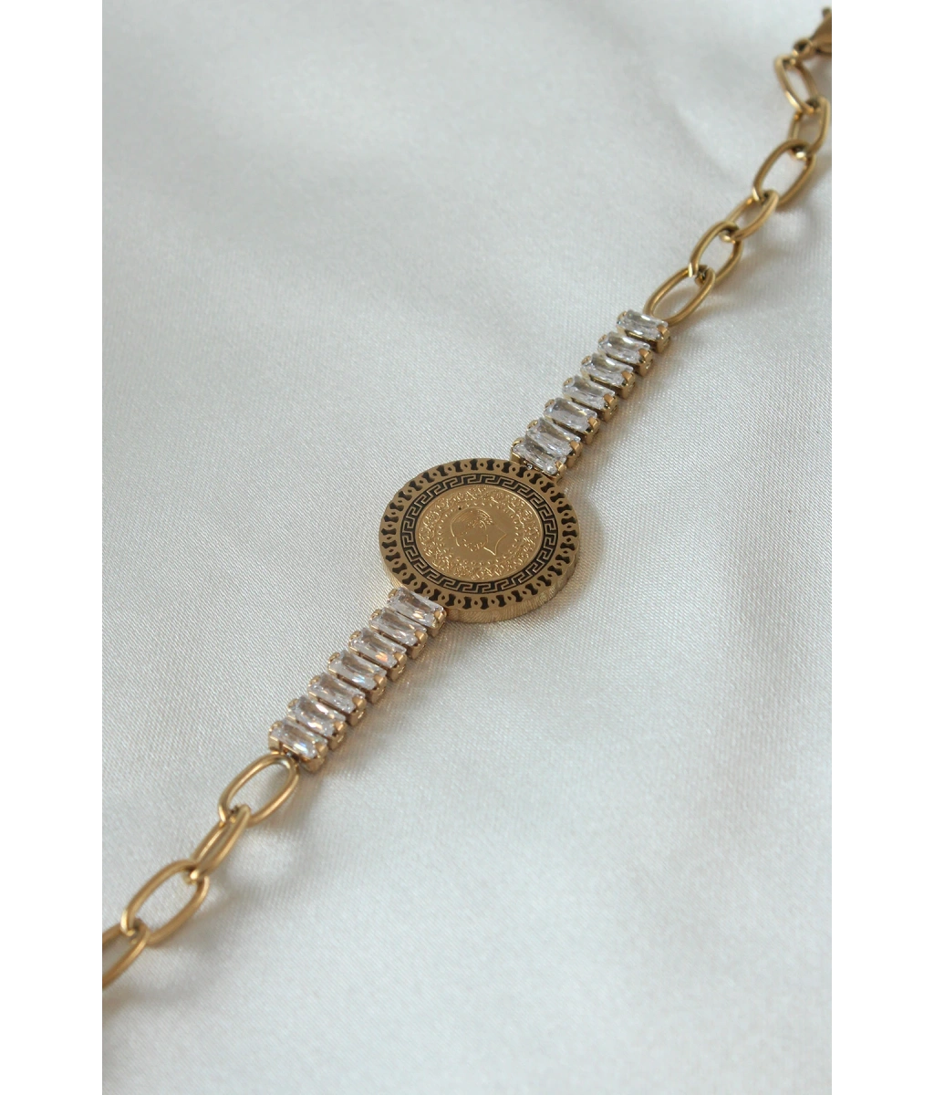 Shoecide 316l Çelik Gold Renk Zirkon Taşlı Bileklik
