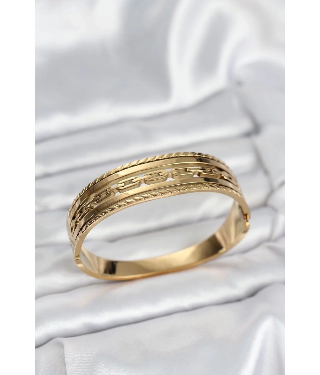 Shoecide 316l Çelik Gold Renk Ezme Zincir Model Kadın Kelepçe Bileklik