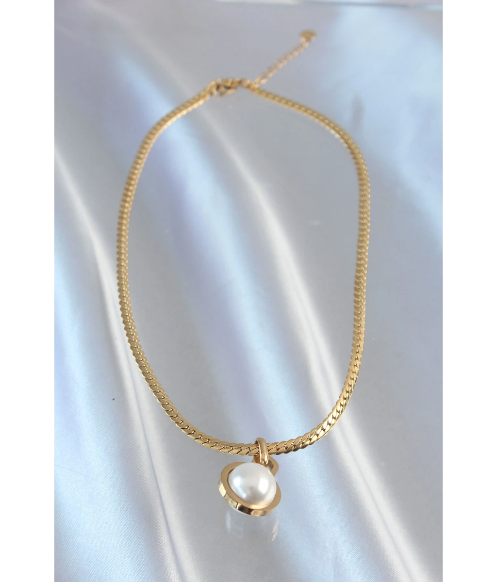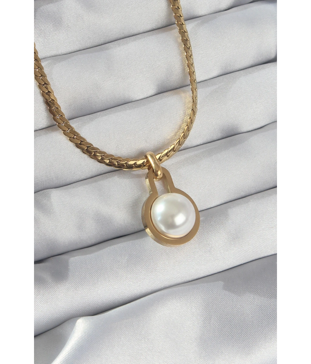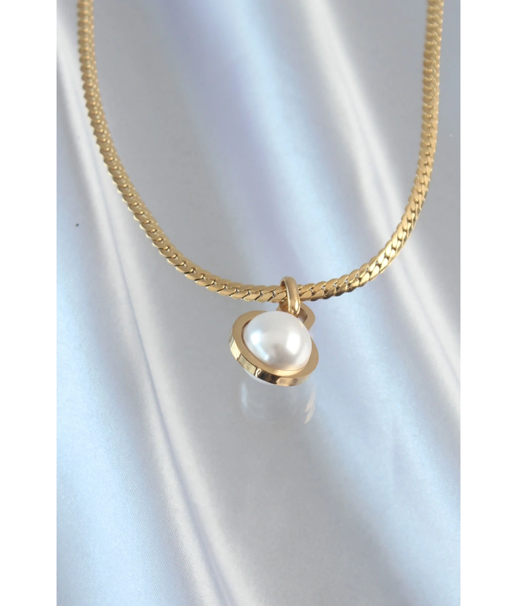Shoecide 316l Çelik Gold Renk Yassı Zincir İnci Taşlı Kolye