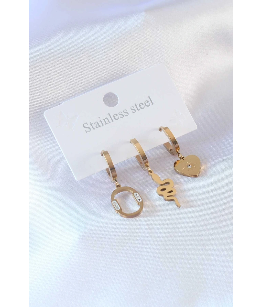 Shoecide 316l Çelik Gold Renk Yılan Model Kalp Detay Zirkon Taşlı Kadın Küpe