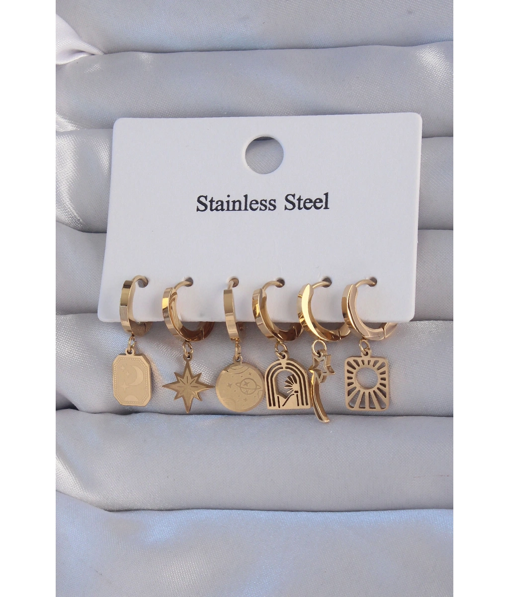 Shoecide 316l Çelik Gold Renk Yıldız Figürlü Tarot Model Halka Küpe Seti