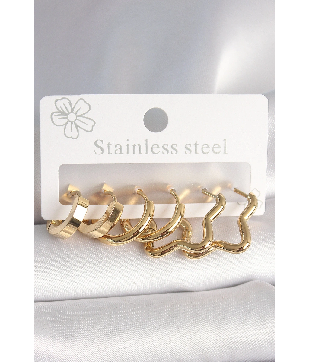 Shoecide 316l Çelik Gold Renk Yıldız Halka Model Kadın Küpe Seti