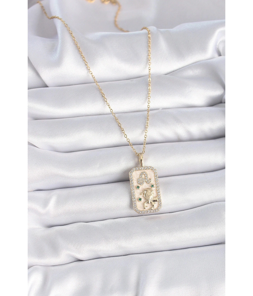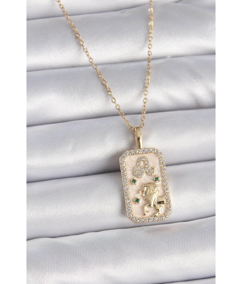 Shoecide 316l Çelik Gold Renk Zincir Aslan Burcu Zirkon Taşlı Kadın Kolye