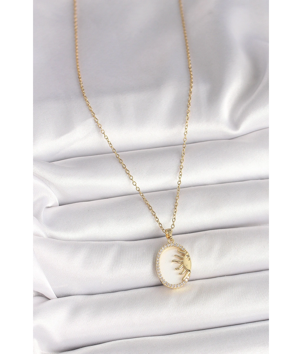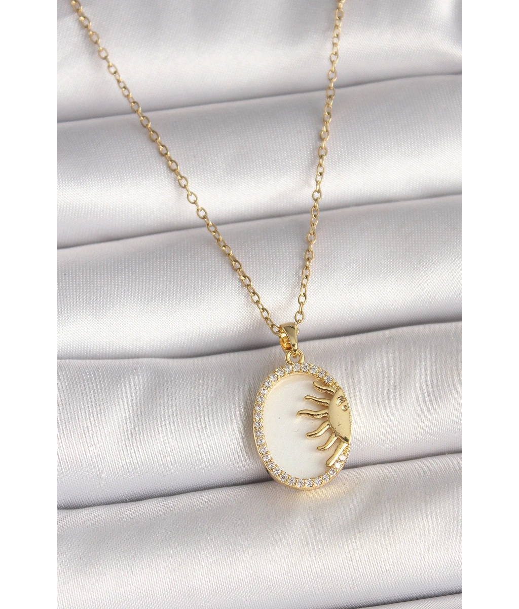 Shoecide 316l Çelik Gold Renk Zincir Beyaz Mineli Gün Batımı Model Zirkon Taş Detay Kadın Kolye