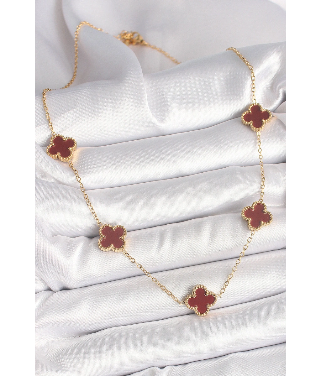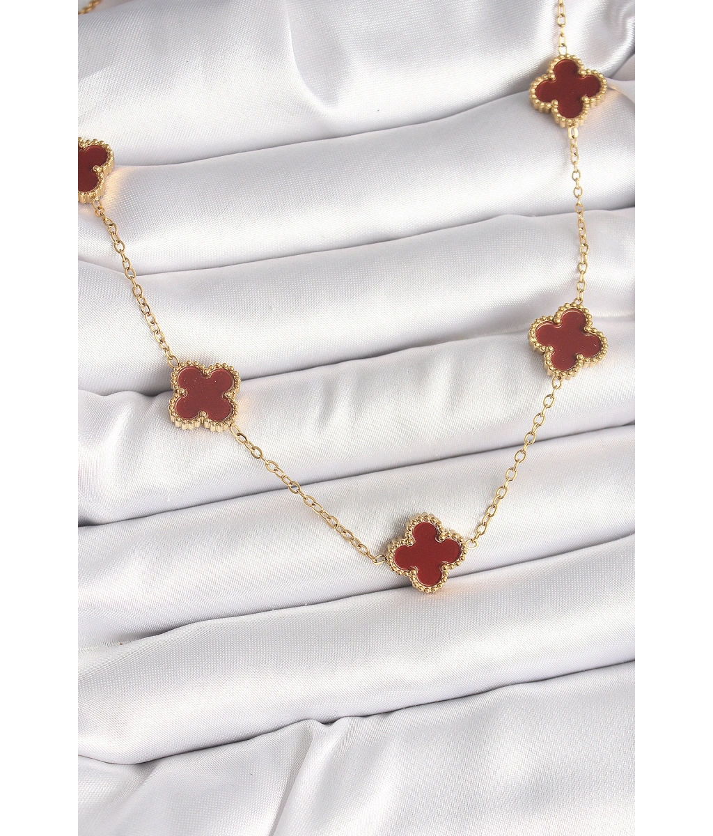 Shoecide 316l Çelik Gold Renk Zincir Bordo Yonca Model Kadın Kolye