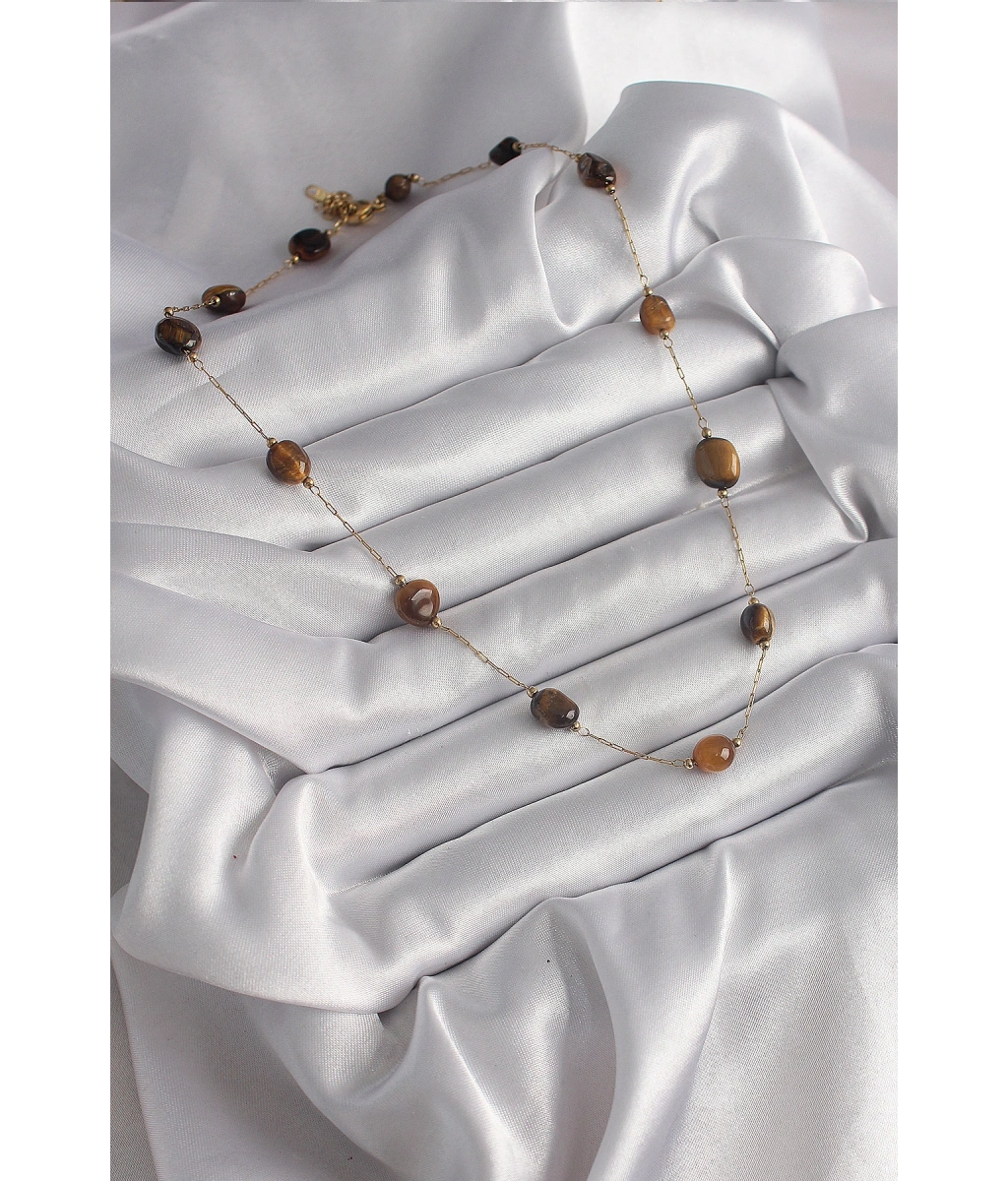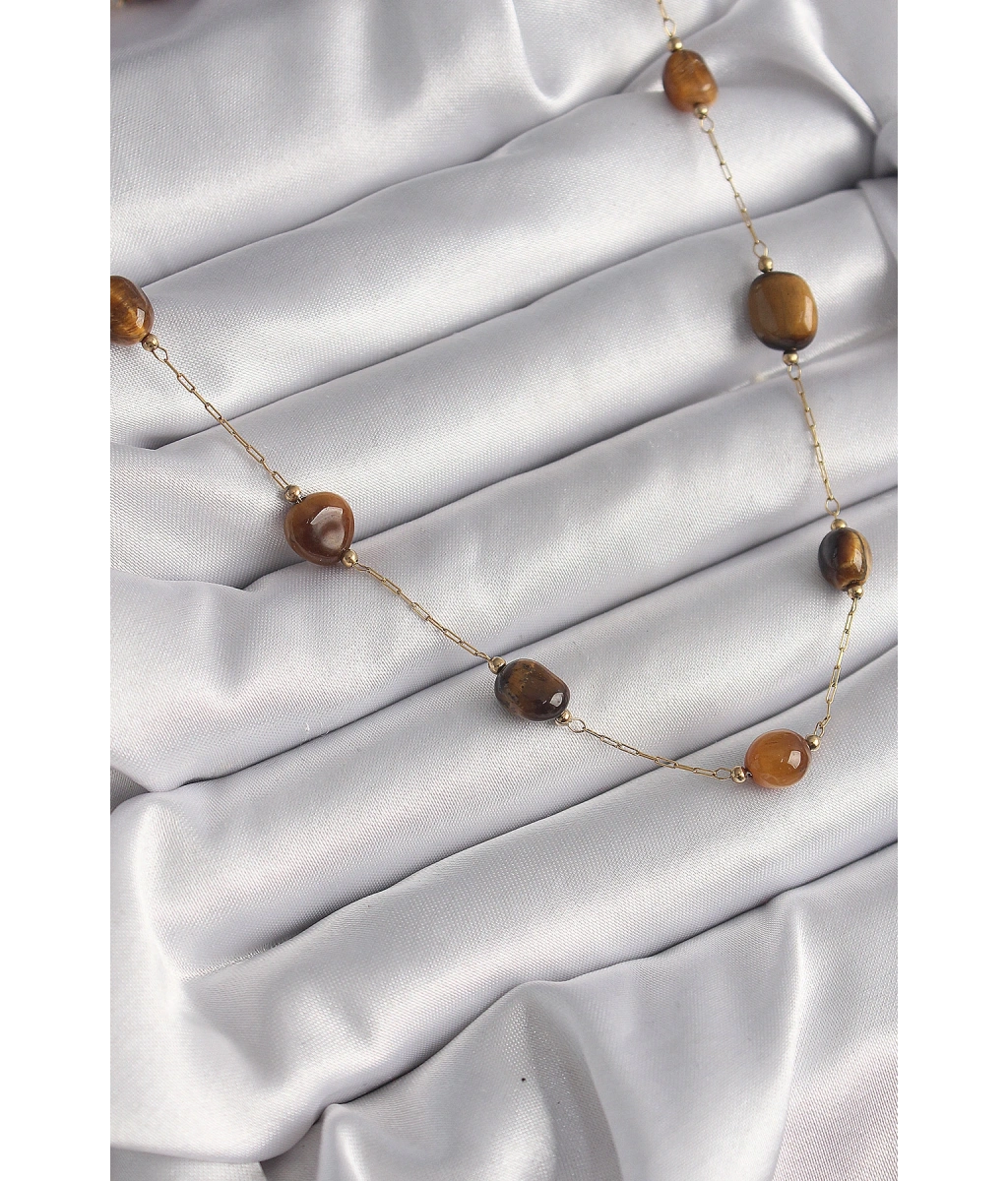 Shoecide 316l Çelik Gold Renk Zincir Kahvrengi Doğaltaş Model Kadın Kolye
