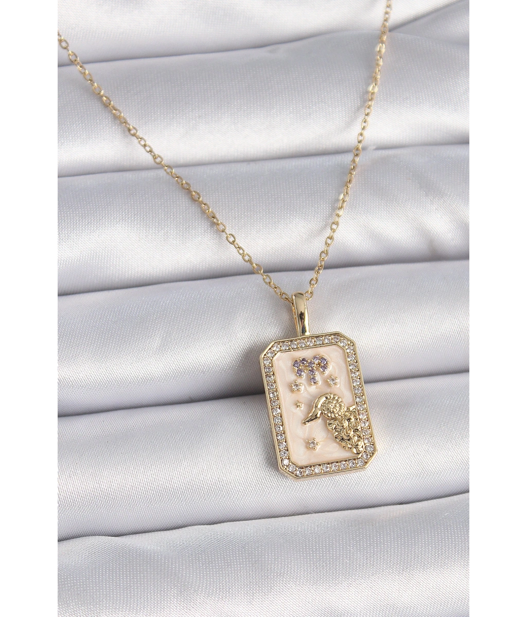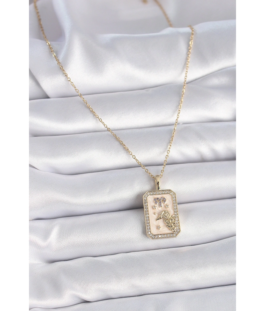 Shoecide 316l Çelik Gold Renk Zincir Koç Burcu Zirkon Taşlı Kadın Kolye