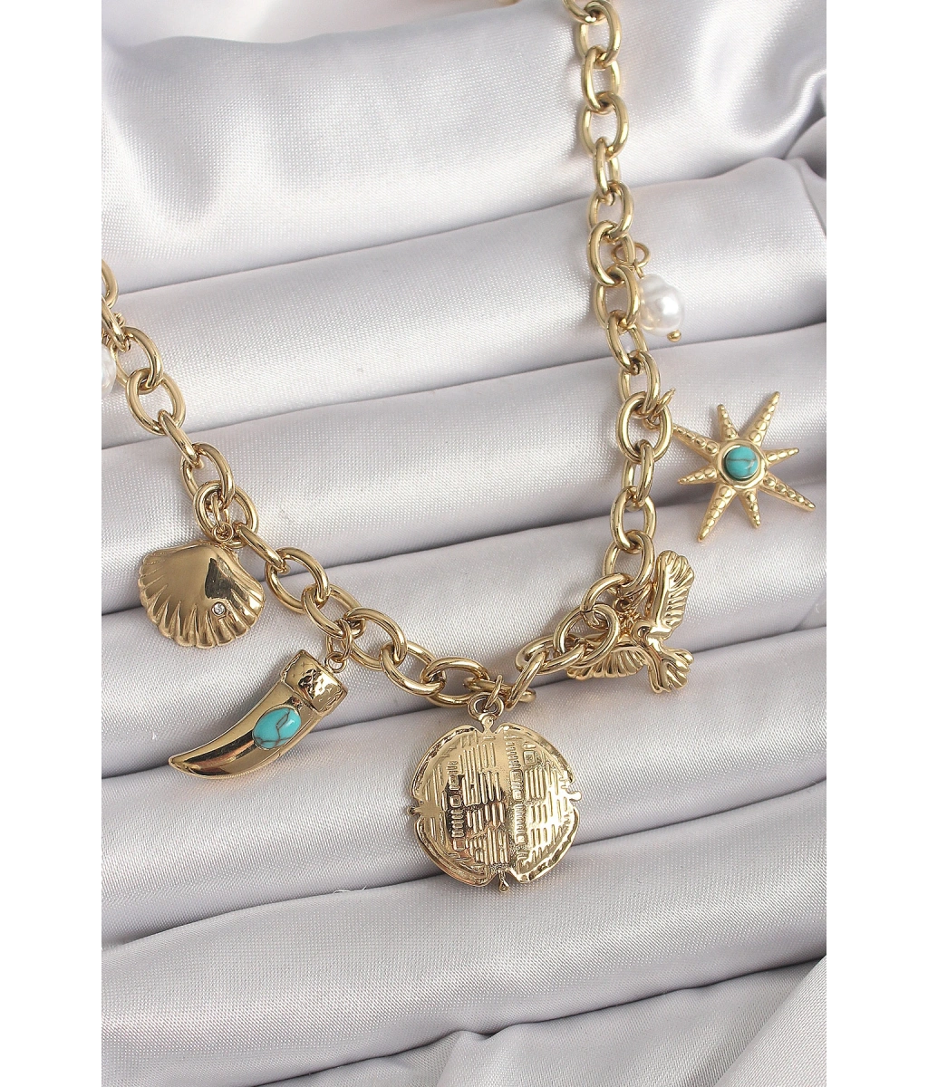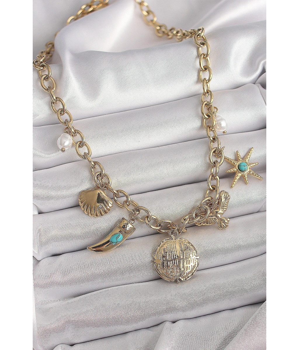 Shoecide 316l Çelik Gold Renk Zincir Sallantılı Çoklu Figür Model Kadın Kolye