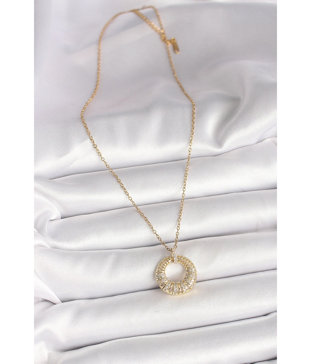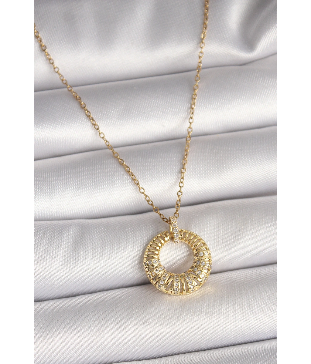 Shoecide 316l Çelik Gold Renk Zincir Zirkon Taş İşlemeli Daire Model Kadın Kolye