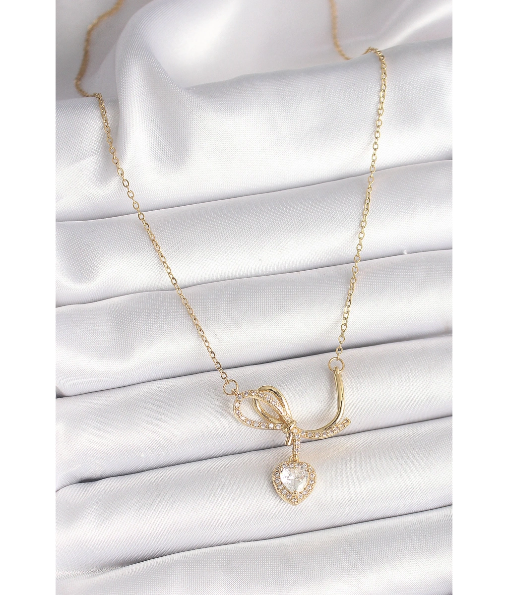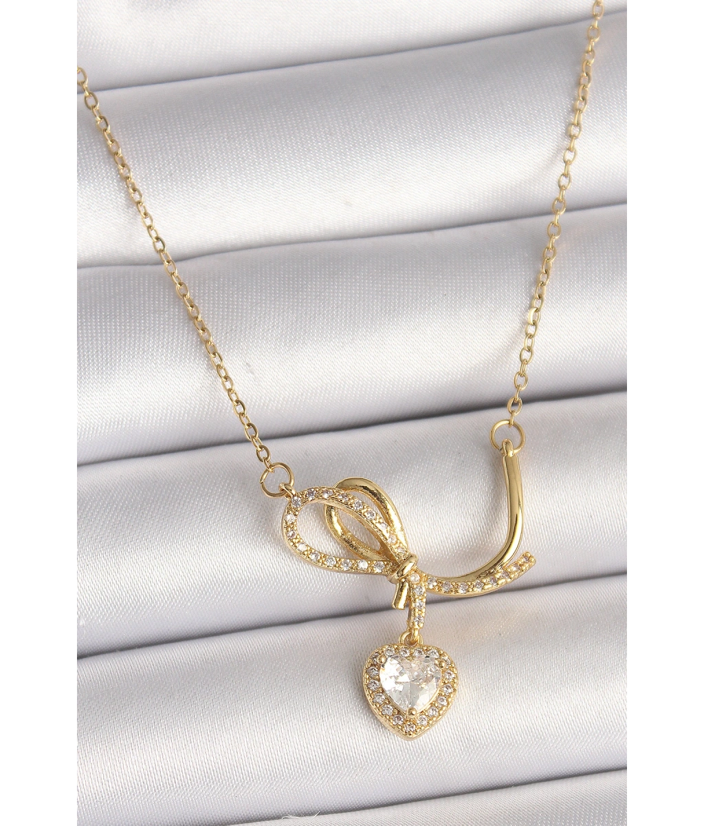 Shoecide 316l Çelik Gold Renk Zincir Zirkon Taşlı Düğüm Sallantı Kalp Model Kadın Kolye