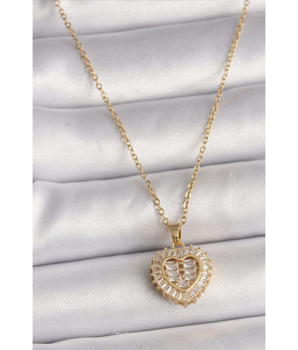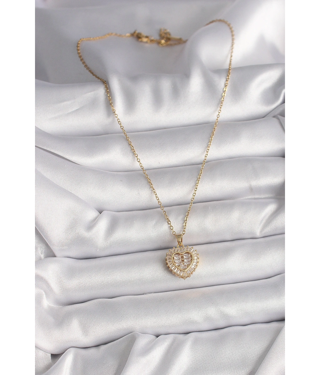Shoecide 316l Çelik Gold Renk Zincir Zirkon Taşlı Kalp Model Kadın Kolye