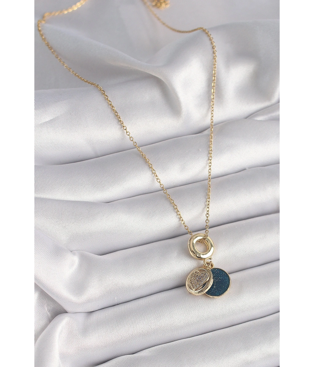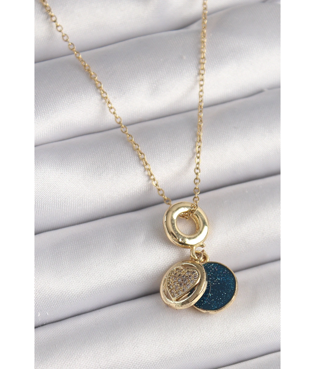 Shoecide 316l Çelik Gold Renk Zincir Zirkon Taşlı Kalp Model Mavi Simli Kadın Kolye