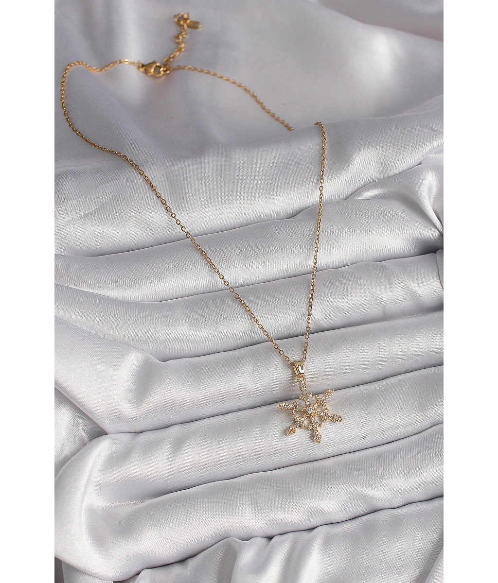 Shoecide 316l Çelik Gold Renk Zincir Zirkon Taşlı Kar Tanesi Model Kadın Kolye