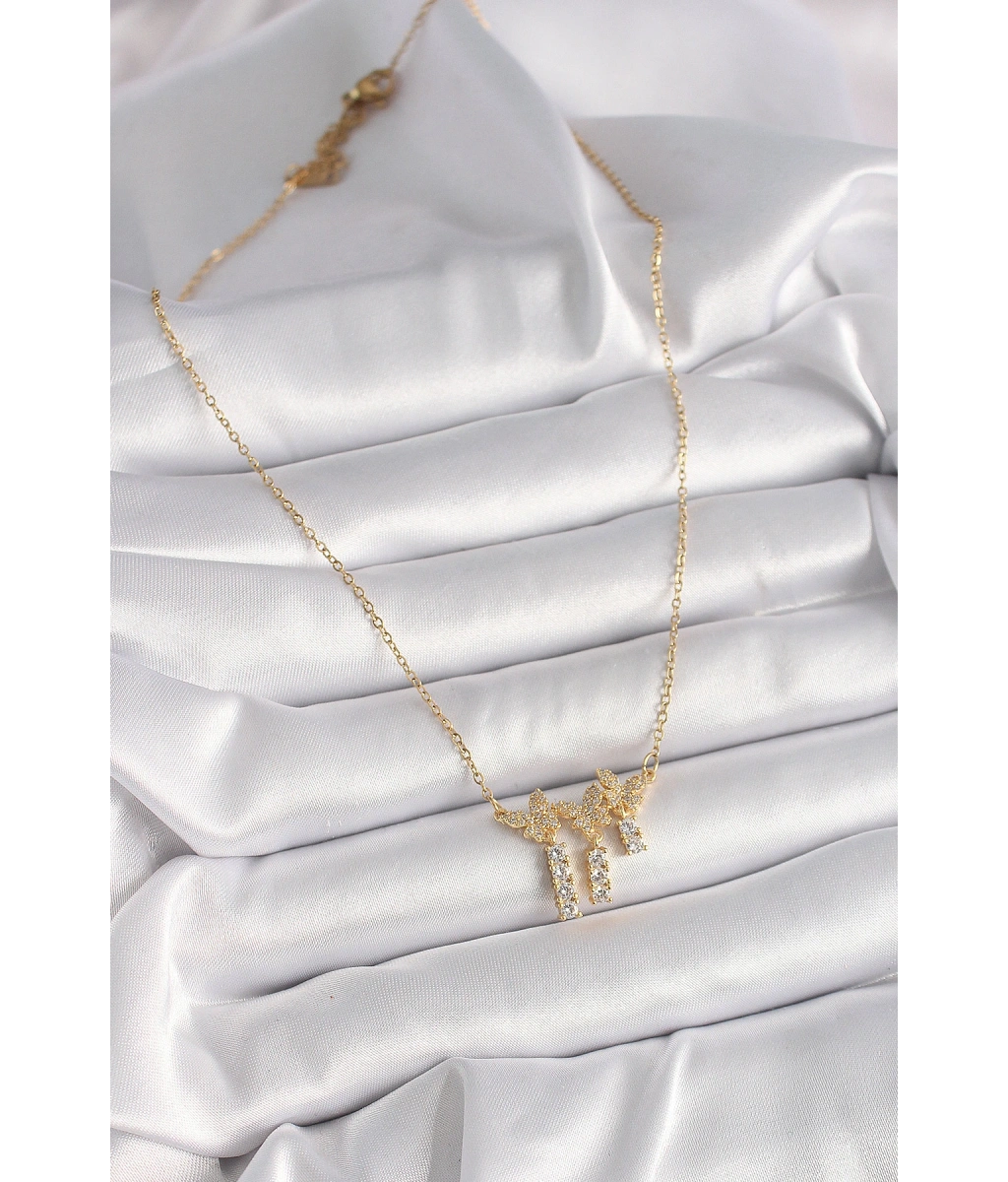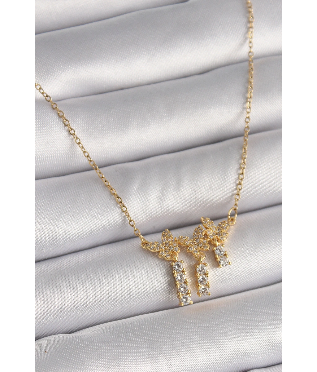 Shoecide 316l Çelik Gold Renk Zincir Zirkon Taşlı Kelebek Model Sallantı Detay Kadın Kolye
