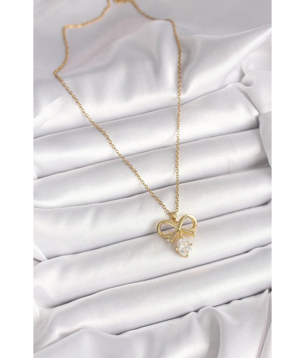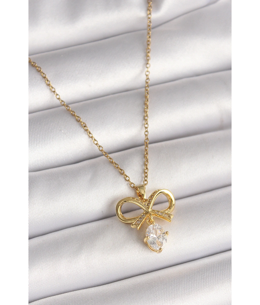 Shoecide 316l Çelik Gold Renk Zincir Zirkon Taşlı Kurdele Model Kadın Kolye