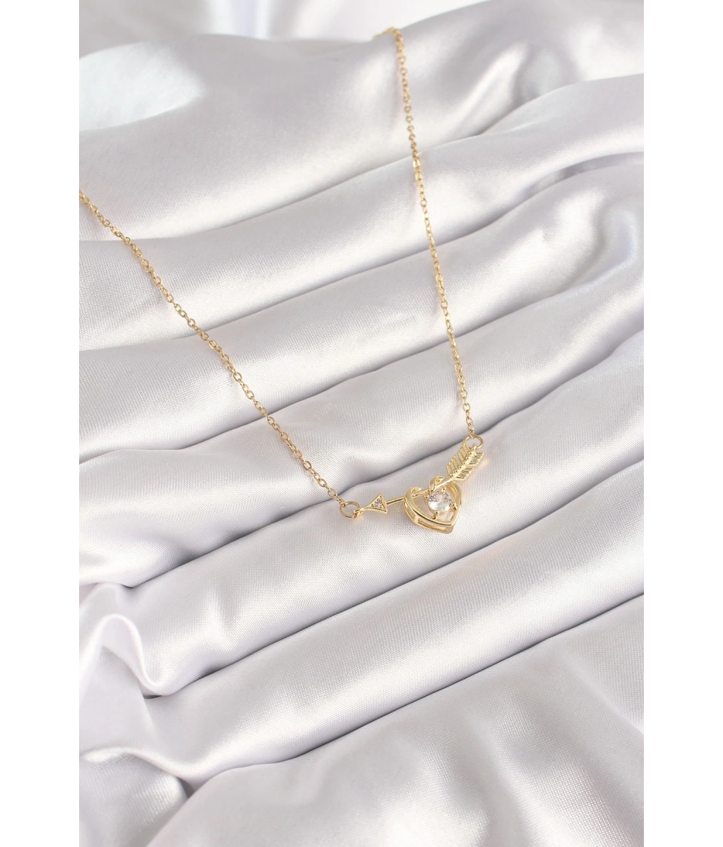 Shoecide 316l Çelik Gold Renk Zincir Zirkon Taşlı Ok Kalp Model Kadın Kolye