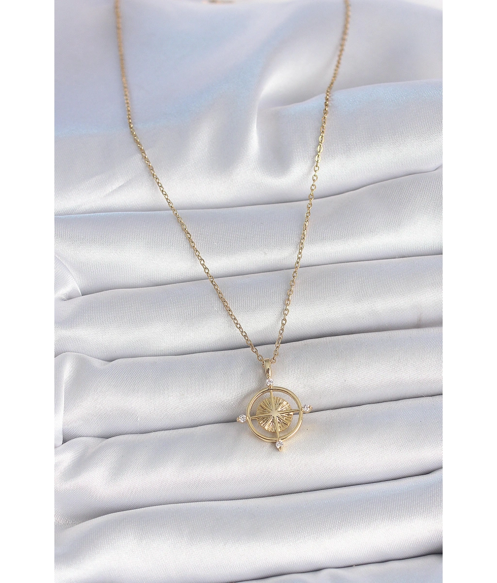 Shoecide 316l Çelik Gold Renk Zincir Zirkon Taşlı Pusula Model Kadın Kolye