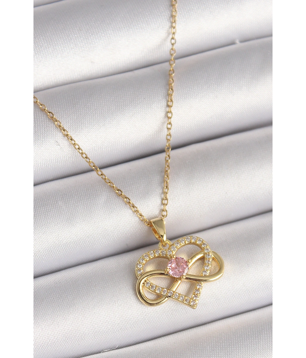 Shoecide 316l Çelik Gold Renk Zincir Zirkon Taşlı Sonsuzluk Kalp Model Kadın Kolye