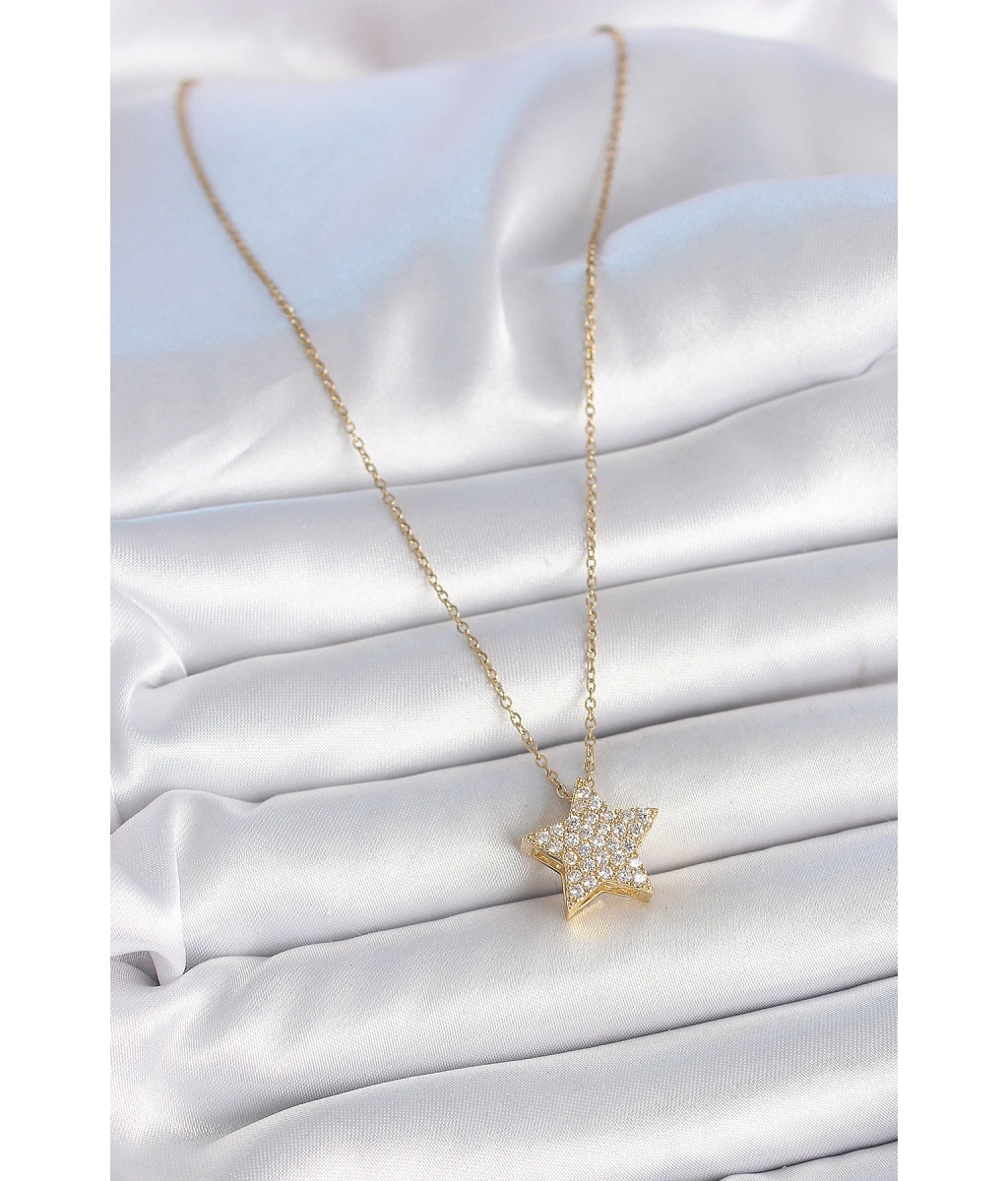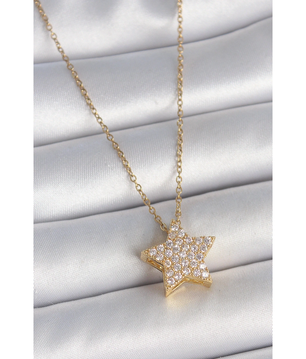 Shoecide 316l Çelik Gold Renk Zincir Zirkon Taşlı Yıldız Model Kadın Kolye