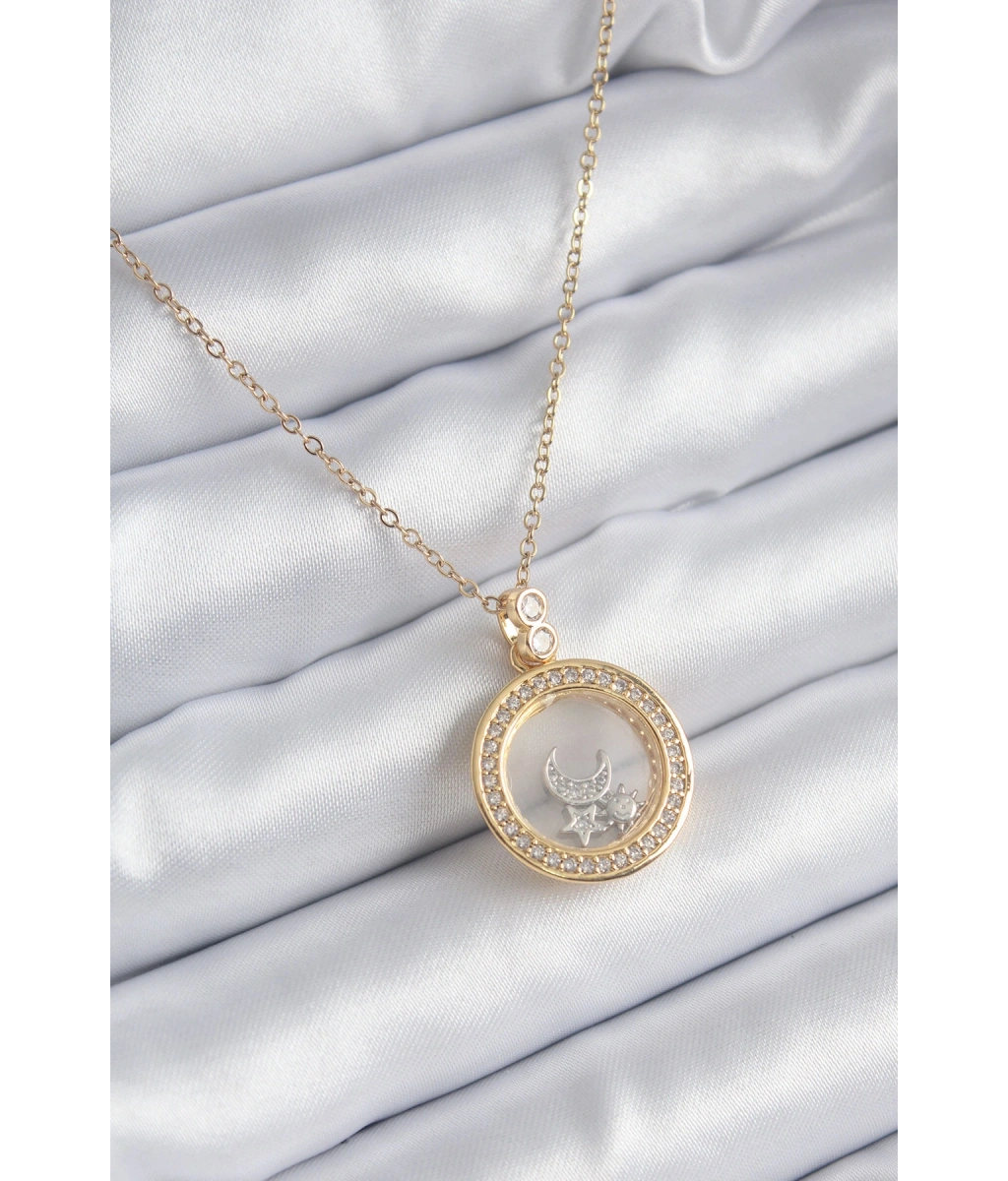 Shoecide 316l Çelik Gold Renk Zirkon Taş Detay Ay Yıldız Fanus Model Kadın Kolye