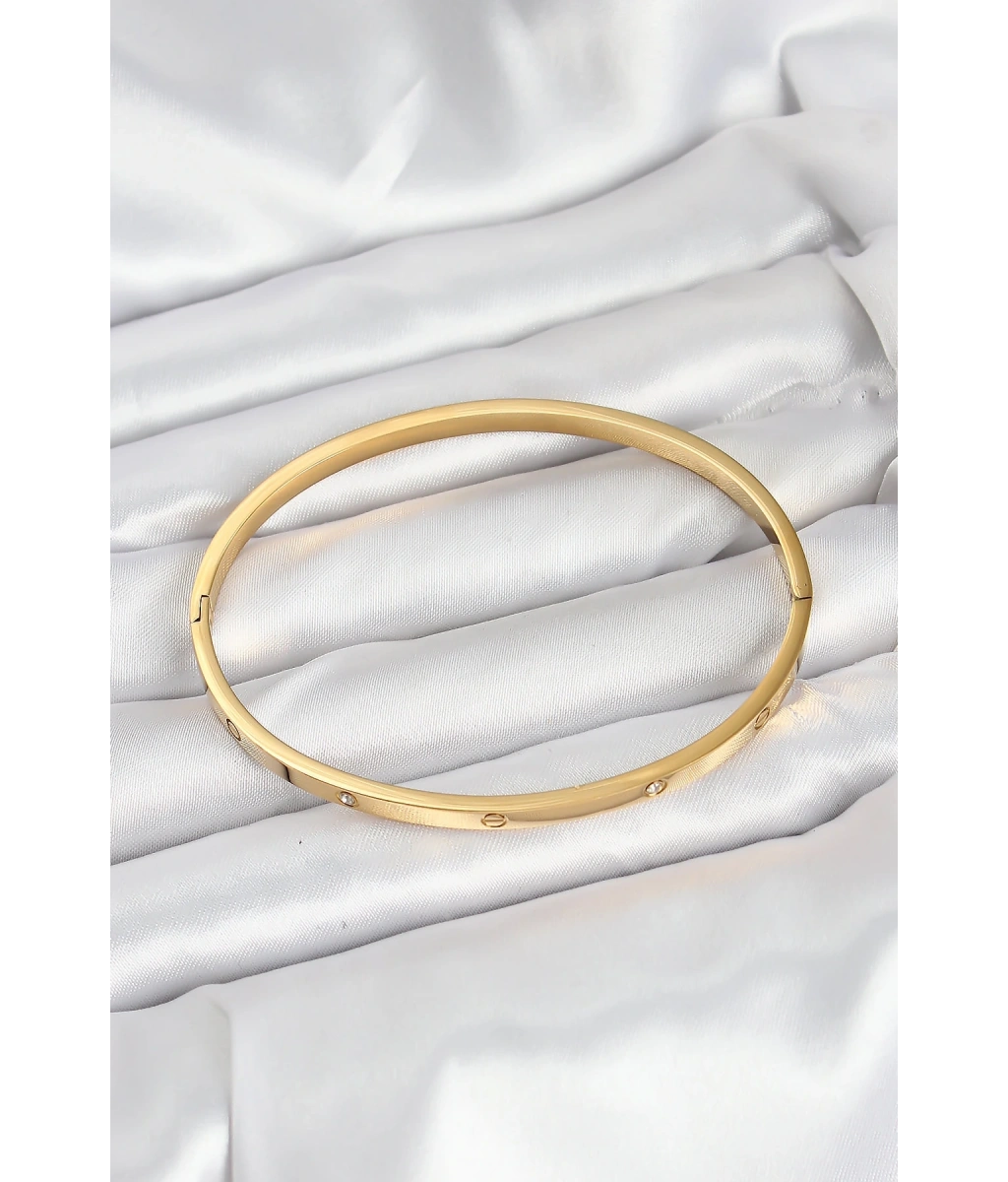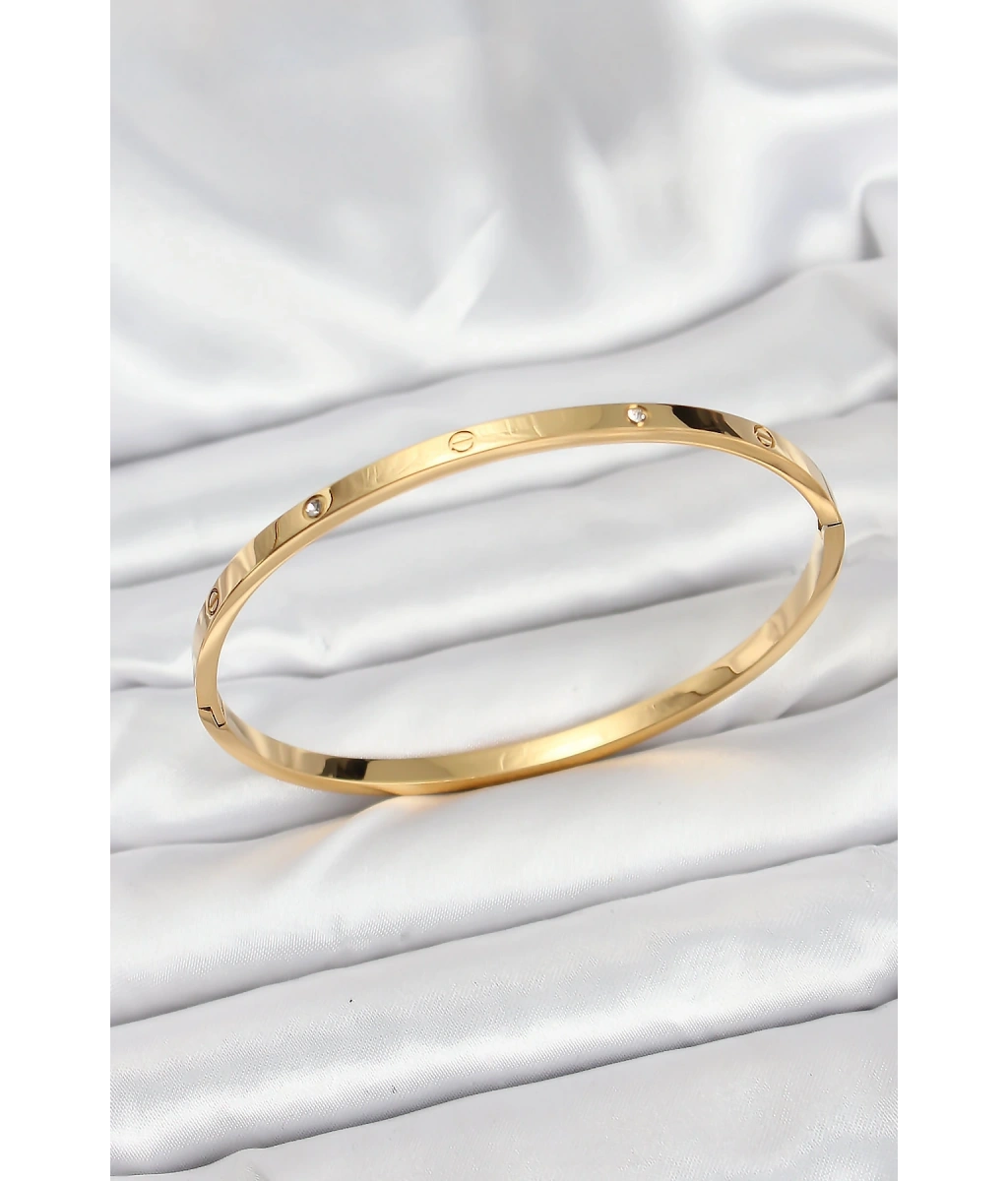 Shoecide 316l Çelik Gold Renk Zirkon Taşlı 65 Mm İnce Kadın Kelepçe Bileklik