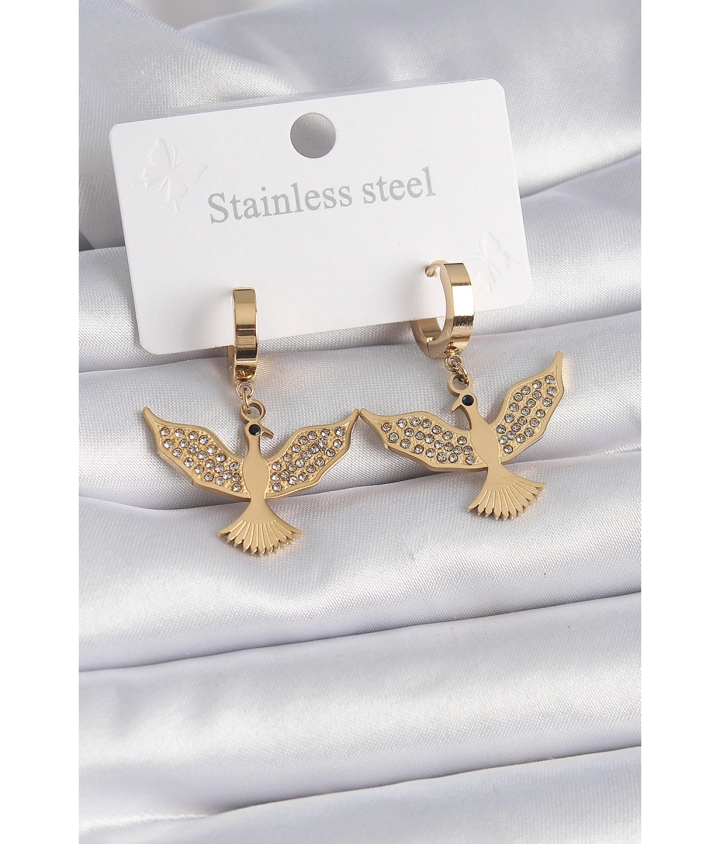 Shoecide 316l Çelik Gold Renk Zirkon Taşlı Anka Kuşu Model Kadın Küpe