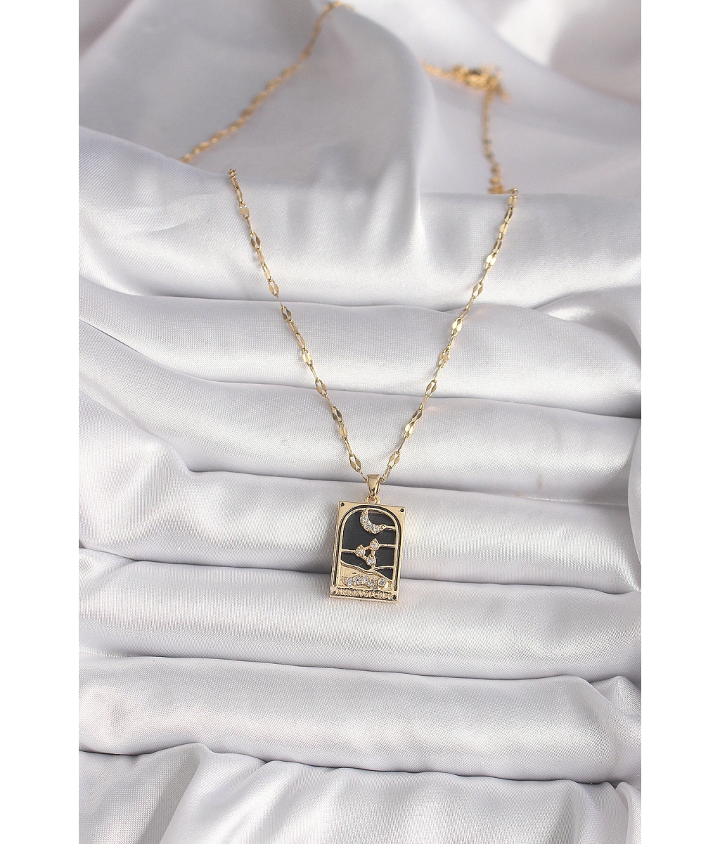 Shoecide 316l Çelik Gold Renk Zirkon Taşlı Ay Figürlü Tarot Model Kadın Kolye