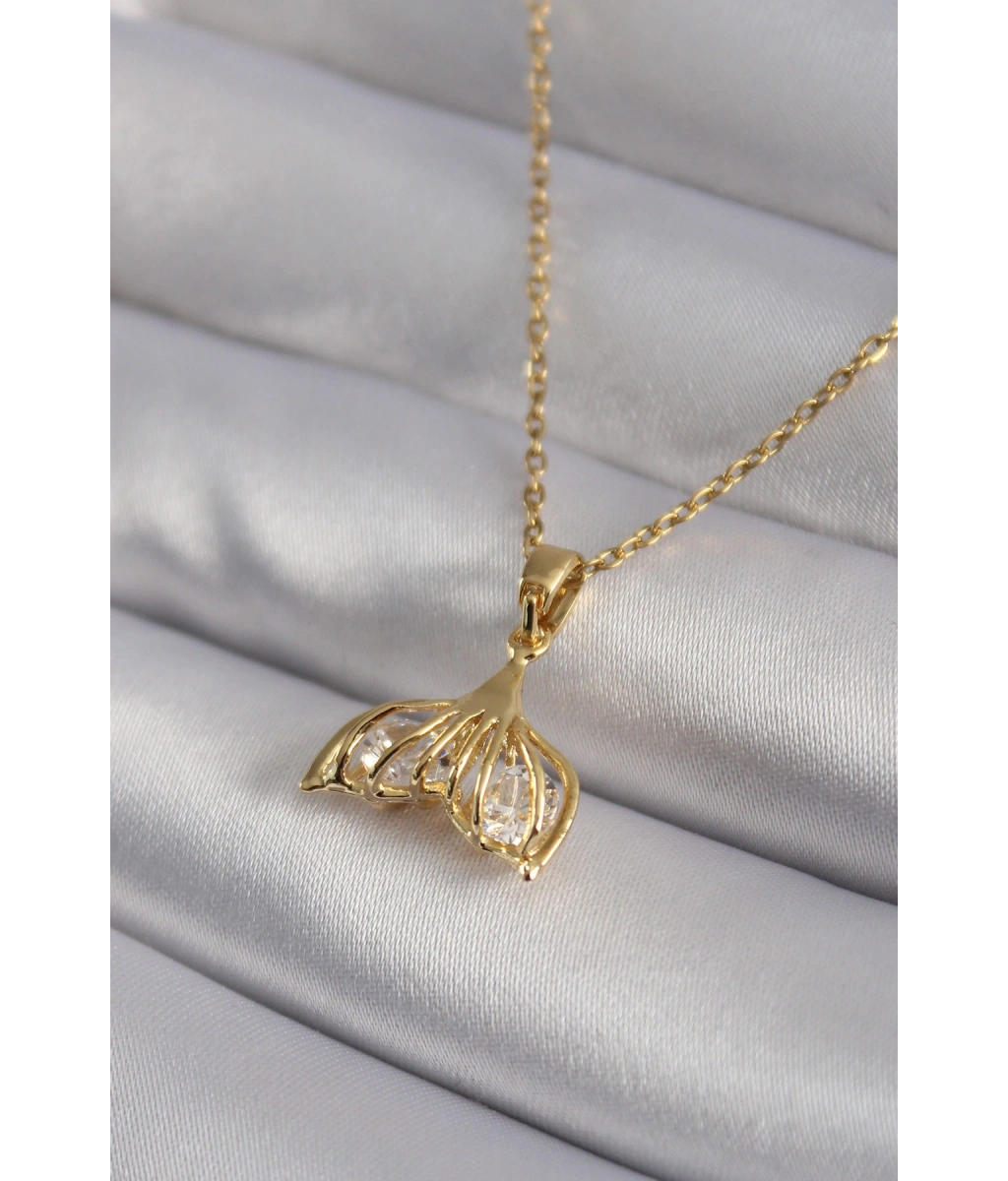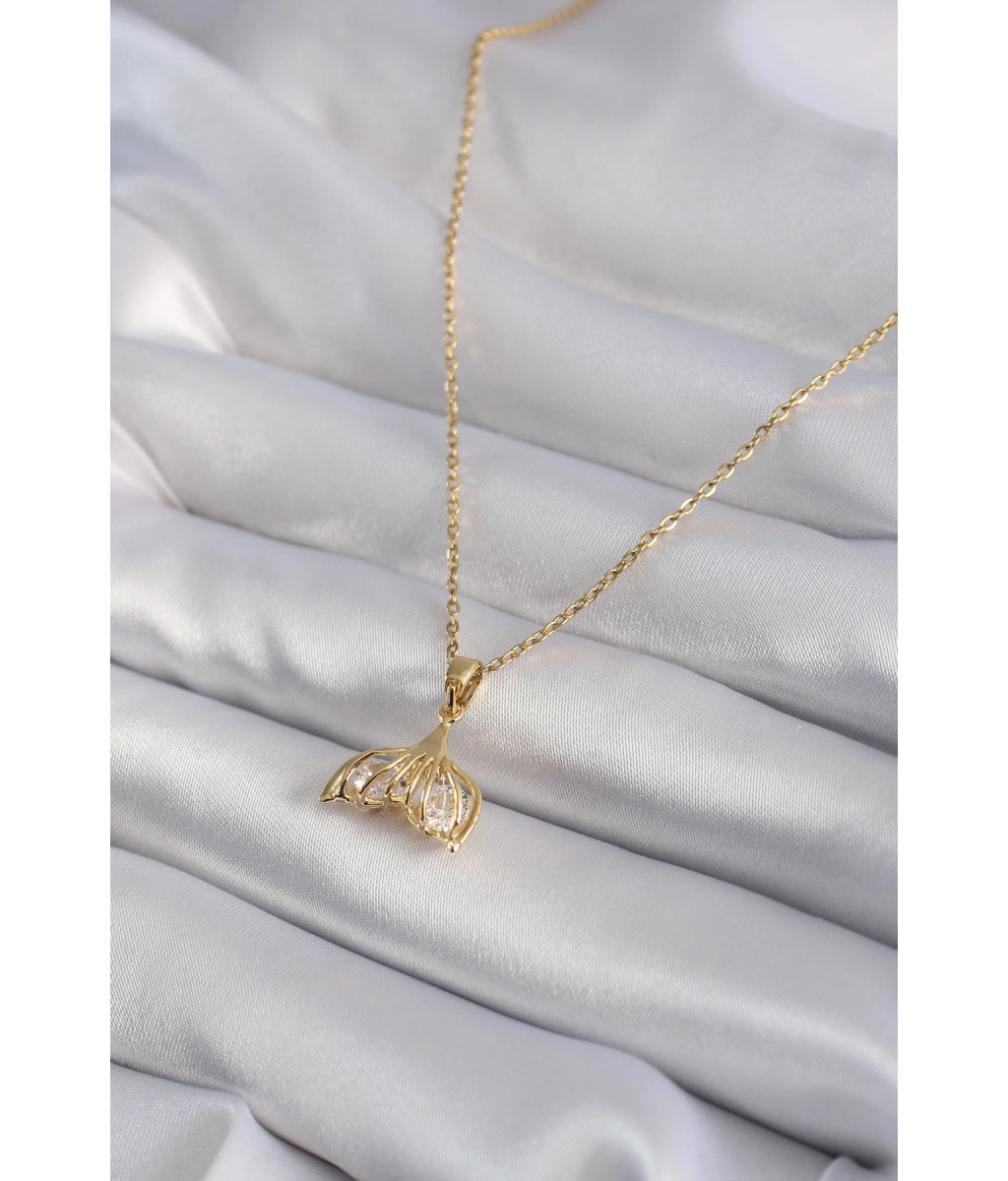 Shoecide 316l Çelik Gold Renk Zirkon Taşlı Balık Kuyruğu Model Kadın Kolye